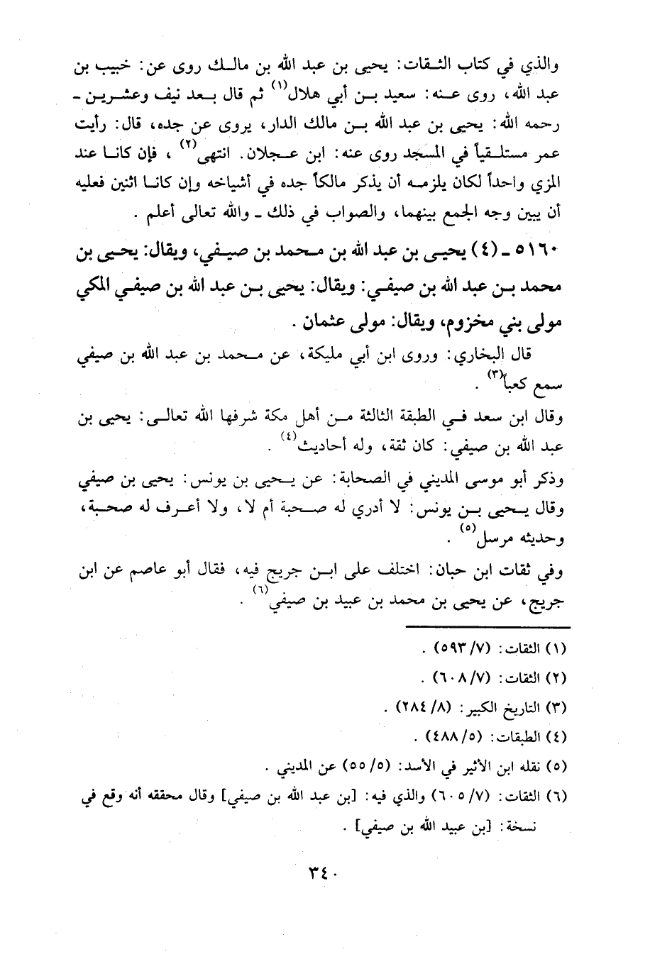 5160- (4) يحيى بن عبد الله بن محمد بن صيفي، ويقال: يحيى بن محمد بن عبد الله بن صيفي، ويقال: يحيى بن عبد الله بن صيفي المكي، مولى بني مخزوم، ويقال: مولى عثمان.