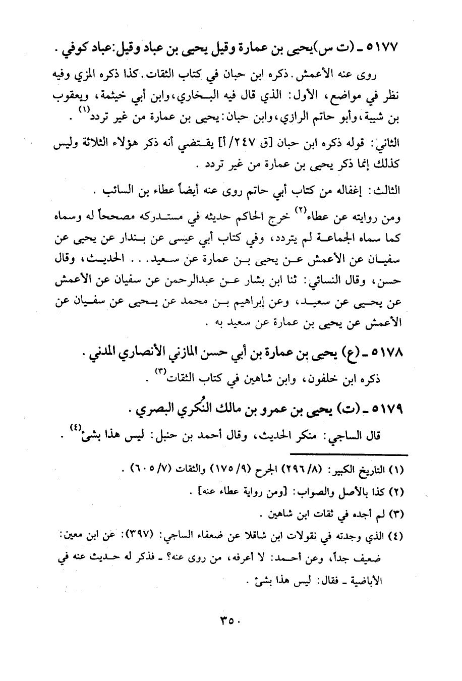 5177- (ت س) يحيى بن عمارة، وقيل: يحيى بن عباد، وقيل: عباد كوفي.