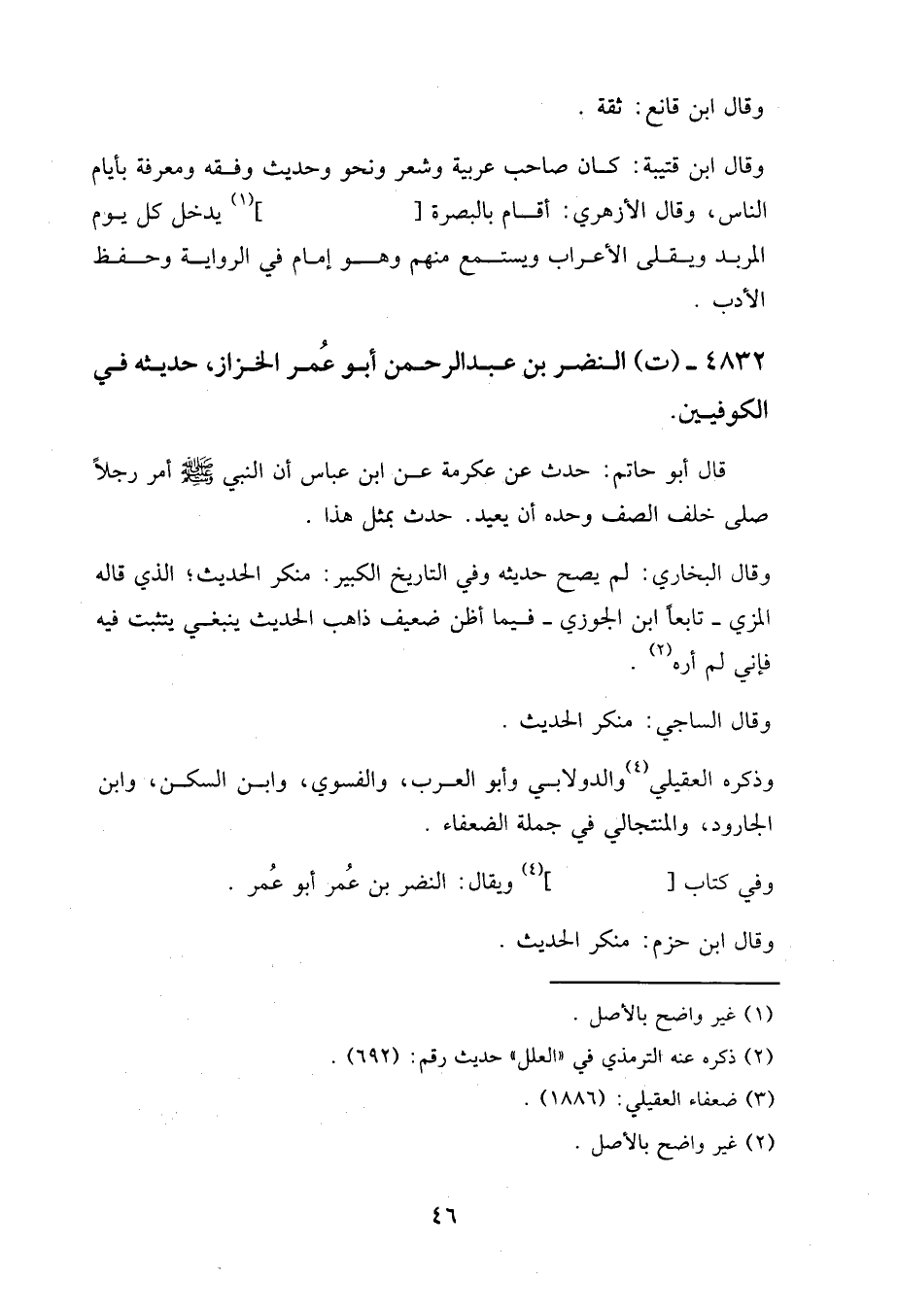 4832 - (ت) النضر بن عبد الرحمن، أبو عمر الخزاز، حديثه في الكوفيين.