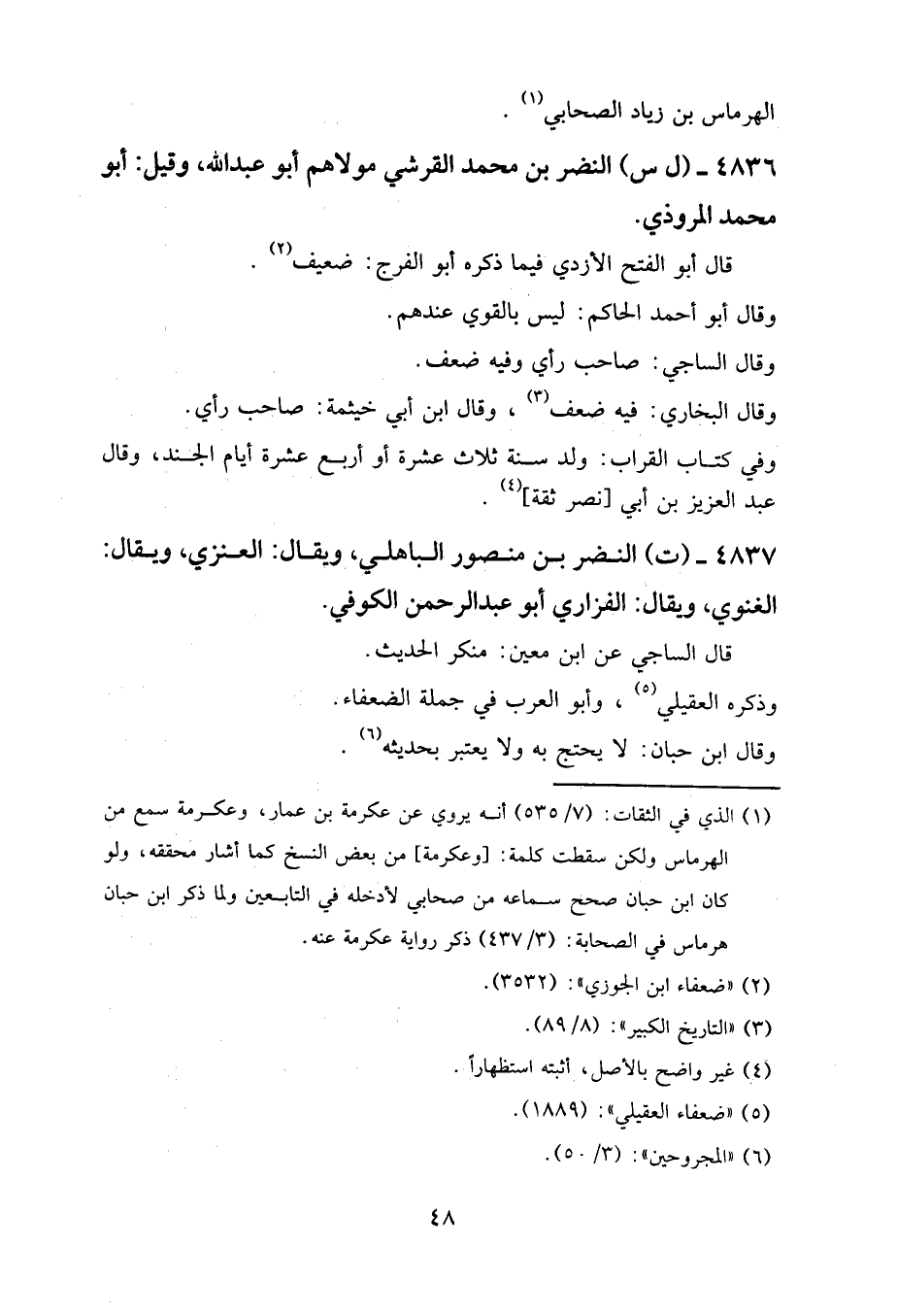 4836- (ل س) النضر بن محمد القرشي، مولاهم أبو عبد الله، وقيل: أبو محمد المروذي.
