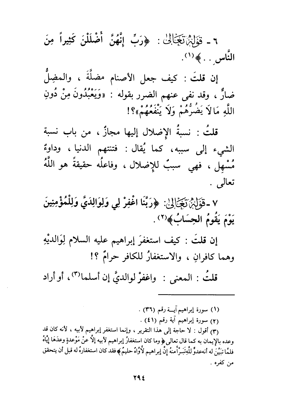 قلتُ: خاطبهم على معتقدهم، لأنهم سمَّوها آلهةً وعبدوها، فأجروها مجرى أولي العلم، ونظيرهُ قولُه تعالى (أَلَهُمْ أَرْجُلٌ يَمْشونَ بِهَا) الآية.
