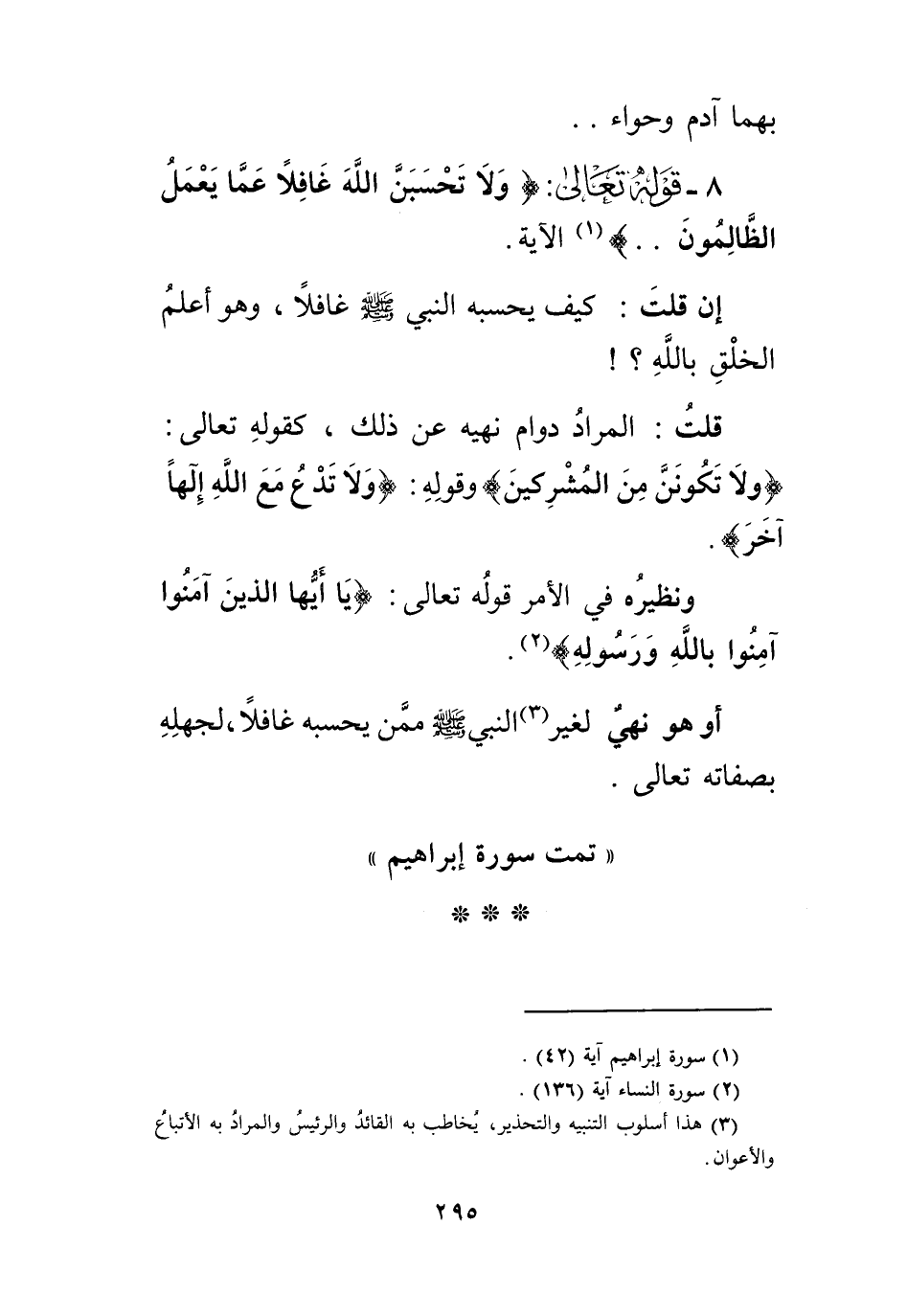 7 - قوله تعالى: (لِيَحْمِلُوا أَوْزَارَهُمْ كَامِلَةً يَوْمَ القِيَامَةِ وَمِنْ أَوْزَارِ الَّذِينَ يُضِلّونَهُمْ) أي ليحملوا أوزار كفرهم مباشرةً، ومِثلَ أو بعضَ أوزارِ كفرِ مَنْ أضلُّوهم، بتسبّبهم في كفرهم. . ف " مِنْ " زائدة، أو تبعيضيَّة. وأمَّا قوله تعالى: (وَلَا تَزِرُ وَازِرَةٌ وِزْرَ أُخْرَى) فمعناه وزراً لا مَدْخل لها فيه، ولا تعلُّق له بها بتسبُّب ولا غيرِه.