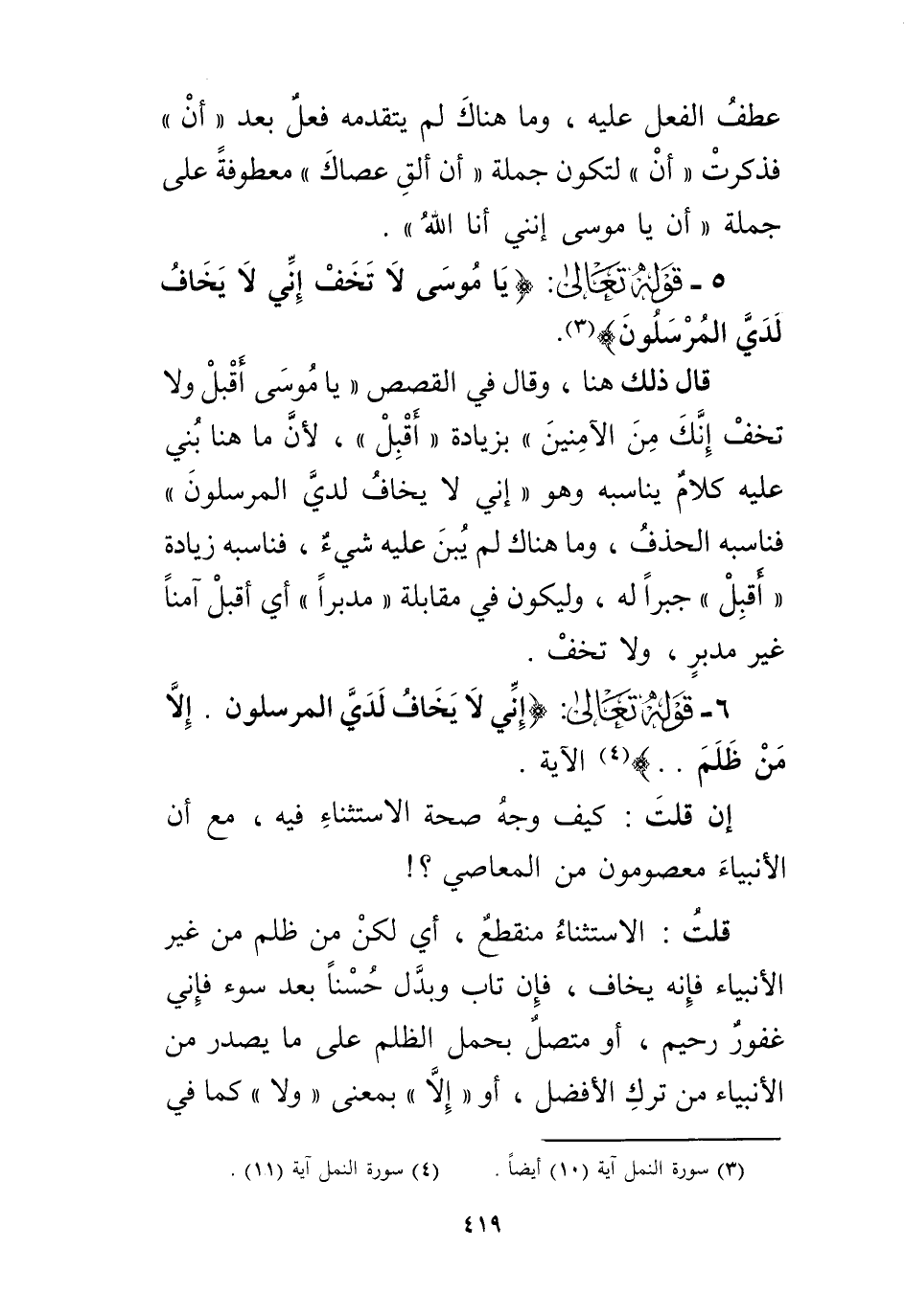 قوله تعالى: (قَالَ هَذَا مِنْ عَمَلِ الشَّيْطَانِ..) الآيتين