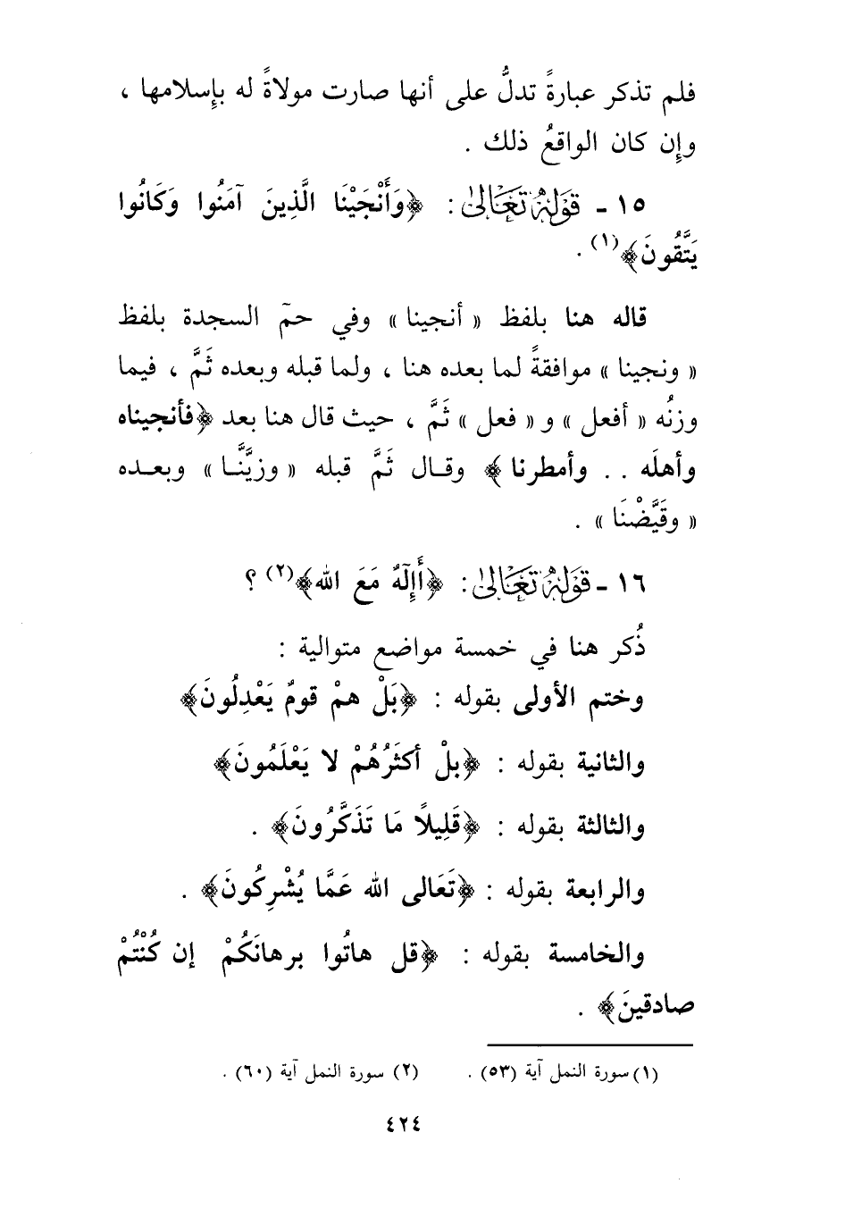 15 - قوله تعالى: (قُلْ أَرَأَيْتُمْ إِنْ جَعَلَ اللهُ عَلَيْكُمُ اللَّيْلَ سَرْمَداً إِلَى يَوْمِ القِيَامَةِ. .) الآيتين.