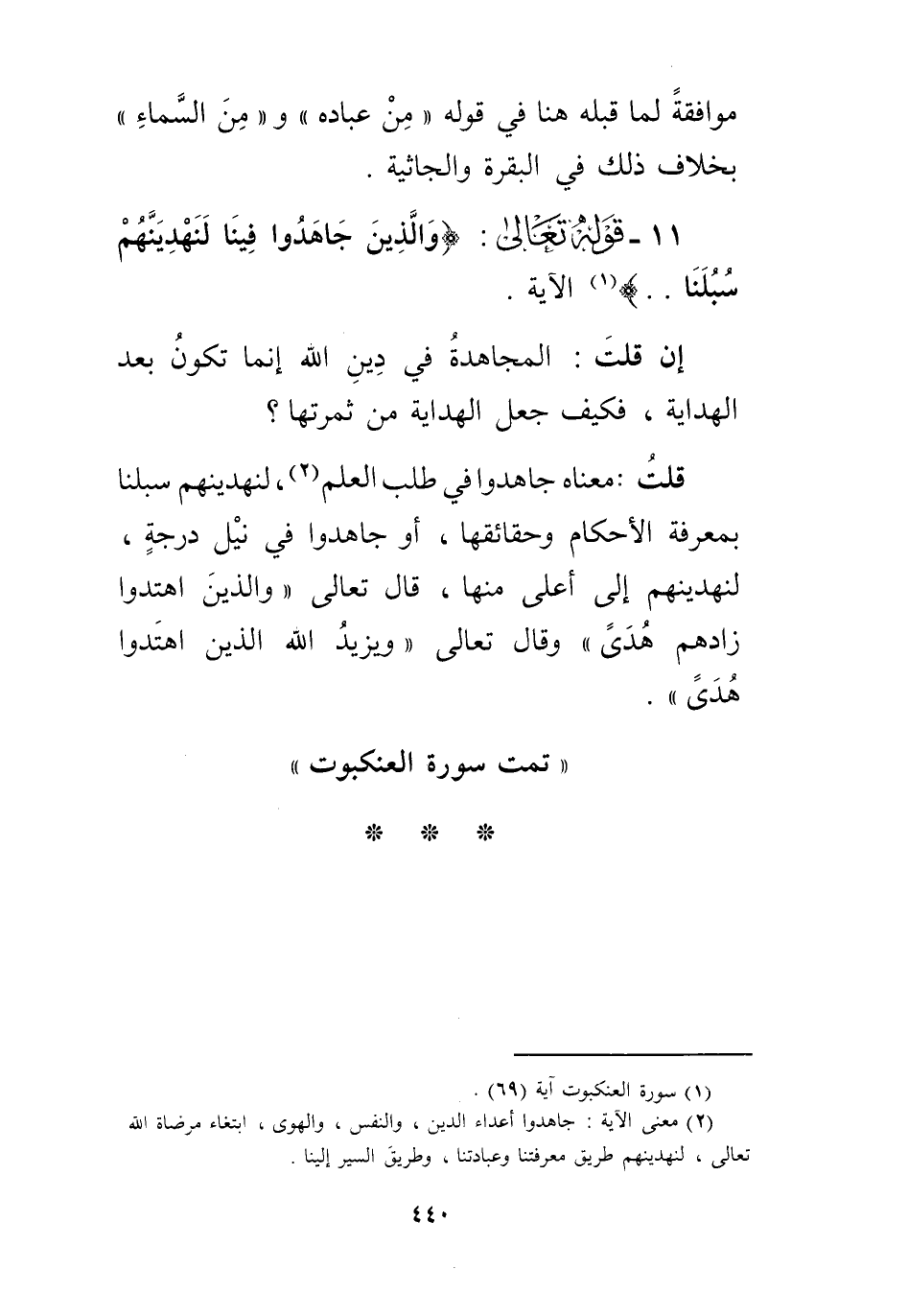 أضاف فيها العلم إلى نفسه في الثلاثة من الخمسة المذكورة، ونفى العلم عن العباد في الأخيرين منها، مع أن الخمسة سواء في اختصاصِ الله تعالى بعلمها، وانتفاء علم العباد بها، لأن الثلاثة الأول أمرها أعظمُ وأفخم، فخُصَّت بالِإضافة إليه تعالى، والأخيرينِ من صفات العباد، فخُضَا بالِإضافة إليهم، مع أنه إذا انتفى عنهم علمهما، كان انتفاءُ علم ما عداها من الخمسة أولى. فإِن قلتَ: لمَ قال تعالى " بأيّ أرضٍ تموتُ " ولم يقل: بأيِّ وقتٍ تموت، مع أن كلَاَ منهما غير معلوم