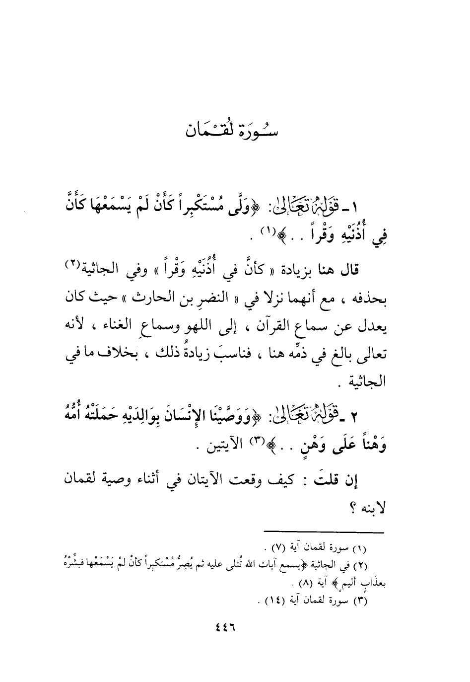 ذكَّر الوصف والضميرَ هنا، نظراً للمضاف وهو العذابُ، وأنّثهما ثمَّ نظراً للمضافِ إليه وهو النَّارُ، وخُصَّ ما هنا بالتذكير، لأن النَّار وقعتْ موقع ضميرها لتقدّم ذكره، والضميرُ لا يُوصف فناسبَ التذكيرُ، وفي سبأ لم يتقدَّمْ ذكرُ النَّارِ ولا ضميرُها، فناسب التأنيثُ.