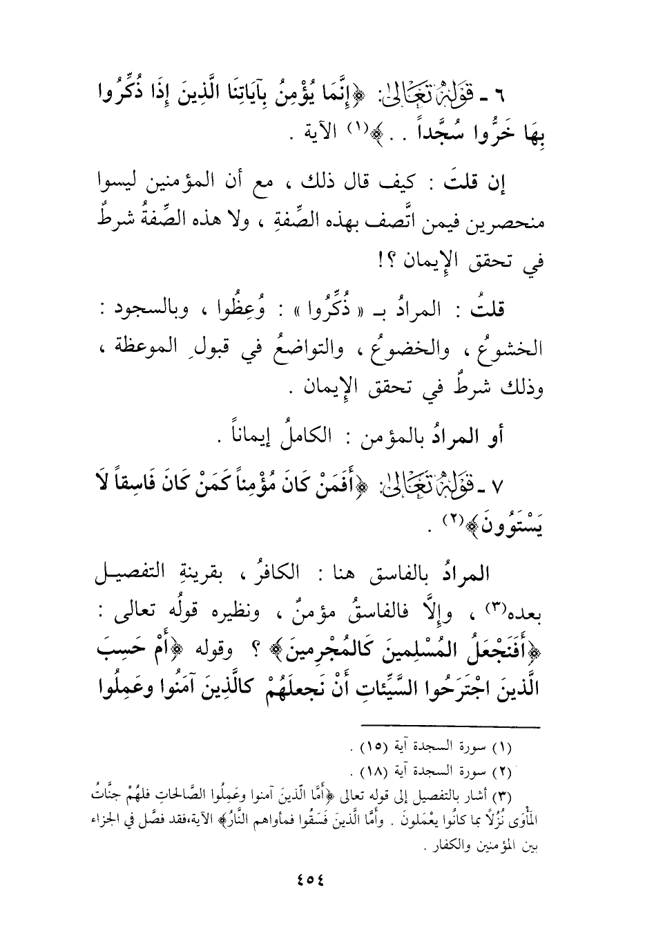 3 1 - قوله تعالى: (وَقَالُوا رَبَّنَا إِنَّا أَطَعْنَا سَادَتَنَا وَكبَرَاءَنَا فَأَضَلُّونَا السَّبِيلاَ. .) عَطَفَ الأول على الثاني، مع أنها بمعنىً، لتغايرهما لفظاً، كقولهم: فلانٌ عاقلٌ لبيب، وقول الشاعر: