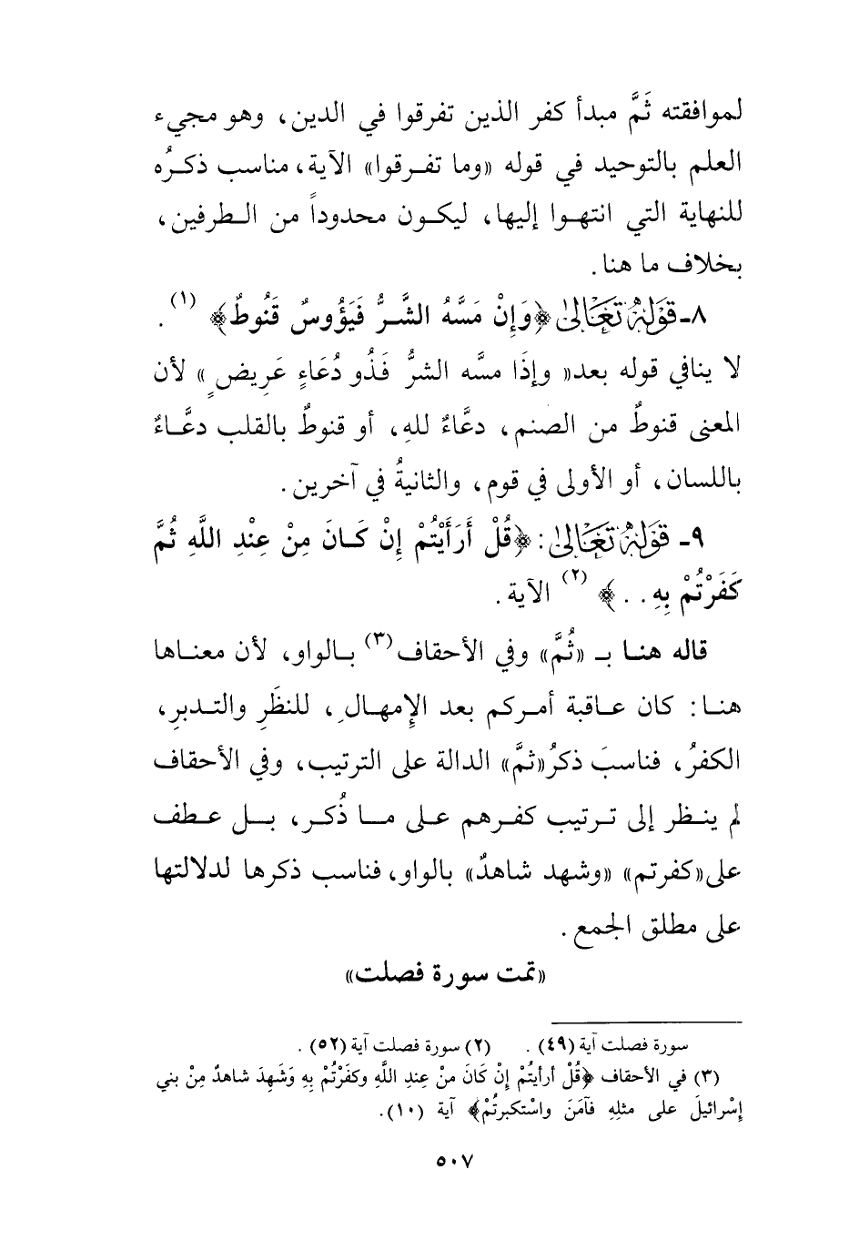 " وفَضَّلْنَاهُمْ على العَالَمِينَ " بحذفه، جرياً هنا على الأصل في ذكرِ ما لا يُغني عنه غيرُه، واكتفاءً ثمَّ بقوله بعدُ " وأضلَّه اللَّهُ على عِلْمٍ ".