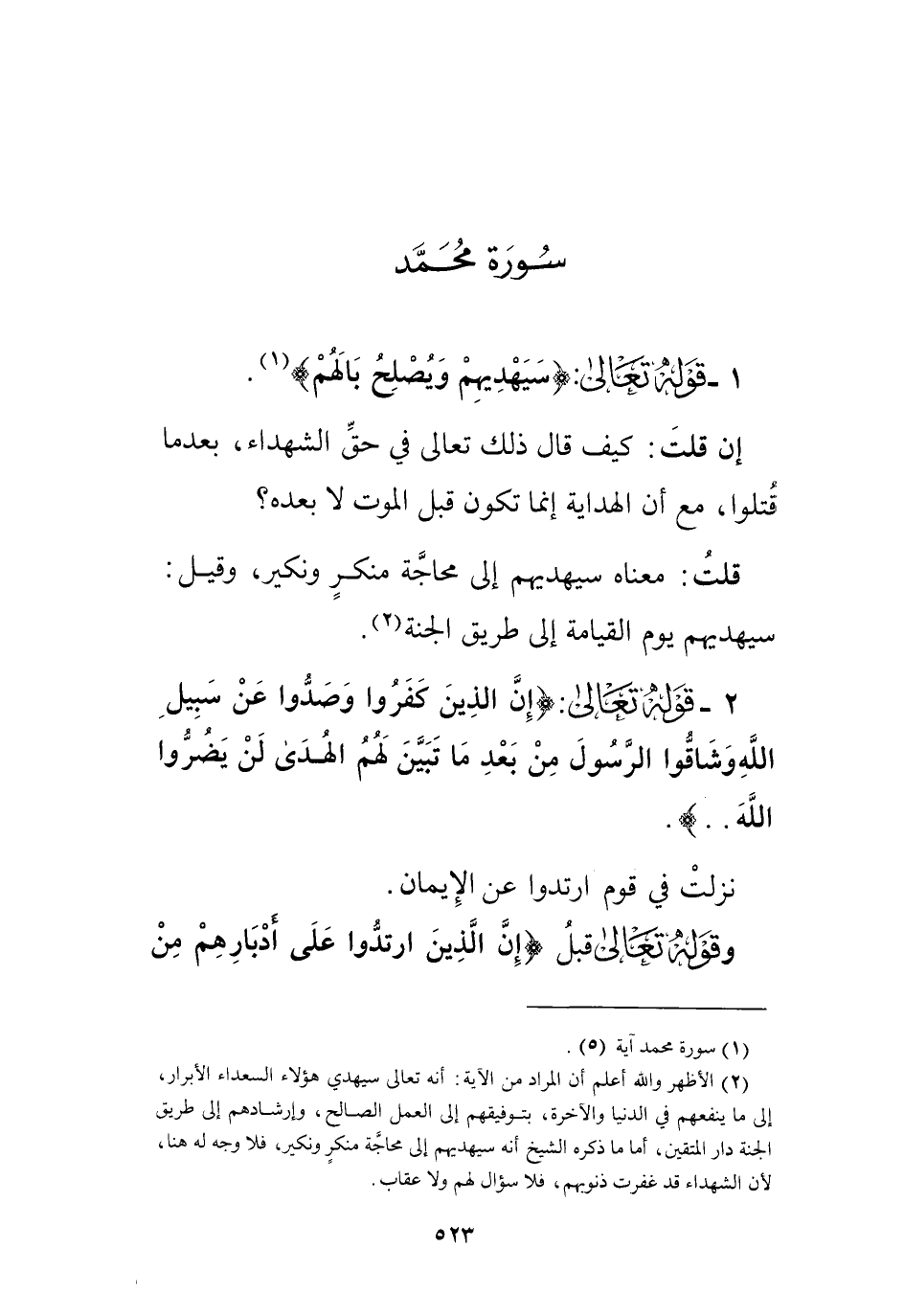 قلتُ: بل الفاعلُ مثنَّى، وهما الملَكَان اللَّذان مرَّ ذكرهما بقوله " وَجَاءَتْ كلُّ نفْسٍ معَها سَائِقٌ وشَهِيدٌ "، أو أنَّ تثنية الفاعل أُقيمت مقام تكرّر الفعل للتأكيد، واتّحادهما حكماً، فكأنه قال: أَلْقِ، أَلْقِ، كقول امرىء القيس: قفا نبكِ، أو أن العرب أكثر ما يوافق الرجل منهم اثنين، فكثر على ألسنتهم خطابهما فقالوا، خليليَّ، وصاحبيَّ، وقِفَا، ونحوها.
