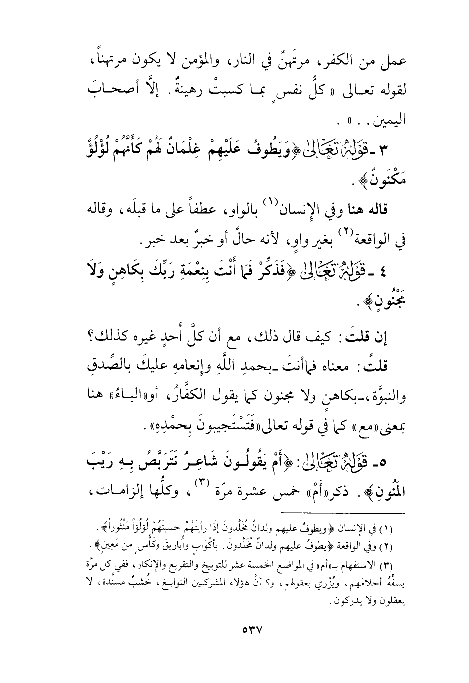 5 - قوله تعالى: (سَنَفْرُغُ لَكُمْ أَيُّهَا الثَّقَلاَنِ) . أي سنقصد لحسابكم، فهو وعيدٌ وتهديدٌ لهم، فالفراغ هنا بمعنى القصدُ للشيء، لا بمعنى الفراغ منه، إذ معنى الفراغ من الشيء، بذلُ المجهود فيه، وهذا لا يُقال في حقه تعالى.
