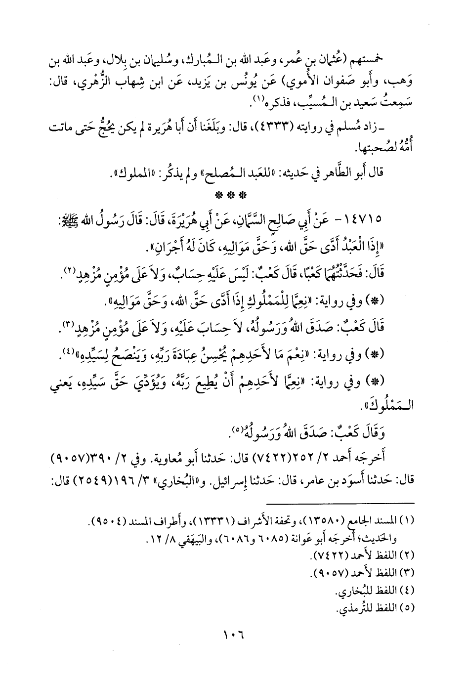 ١٤٧١٥ - عن أبي صالح السَّمَّان، عن أبي هريرة، قال: قال رسول الله صَلى الله عَليه وسَلم: