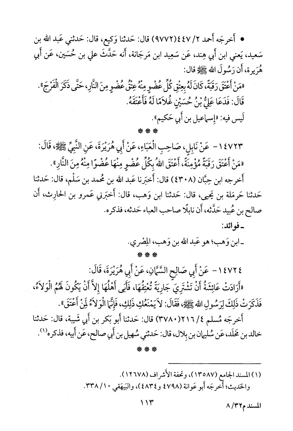 (¬١) المسند الجامع (١٣٥٨٧)، وتحفة الأشراف (١٢٦٧٨).