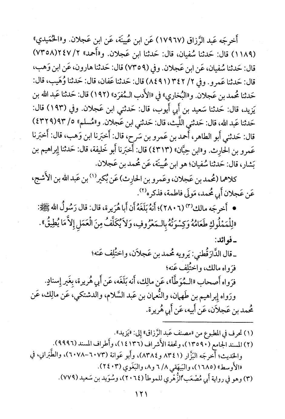 وفي (١٩٣) قال: حدثنا عبد الله، قال: حدثني الليث، قال: حدثني ابن عَجلان. و «مسلم» ٥/ ٩٣ (٤٣٢٩) قال: حدثني أَبو الطاهر، أحمد بن عَمرو بن سرح، قال: أخبرنا ابن وهب، قال: أخبرنا عَمرو بن الحارث. و «ابن حِبَّان» (٤٣١٣) قال: أخبرنا أَبو خليفة، قال: حدثنا إبراهيم بن بشار، قال: حدثنا سفيان؛ هو ابن عُيينة، عن محمد بن عَجلان.