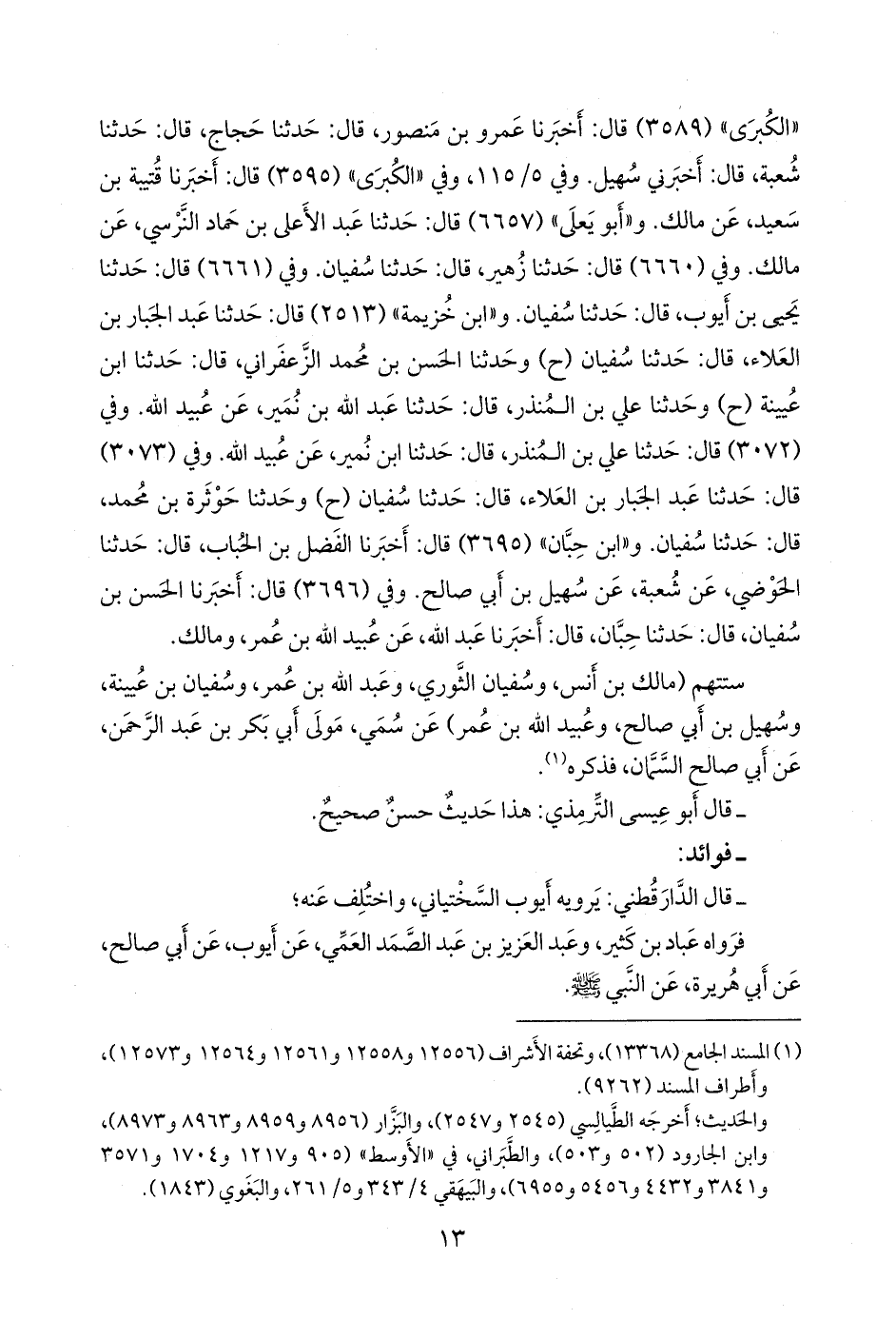 وفي (٣٠٧٢) قال: حدثنا علي بن المنذر، قال: حدثنا ابن نُمير، عن عُبيد الله. وفي (٣٠٧٣) قال: حدثنا عبد الجبار بن العلاء، قال: حدثنا سفيان (ح) وحدثنا حوثرة بن محمد، قال: حدثنا سفيان. و «ابن حِبَّان» (٣٦٩٥) قال: أخبرنا الفضل بن الحُبَاب، قال: حدثنا الحوضي، عن شعبة، عن سهيل بن أبي صالح. وفي (٣٦٩٦) قال: أخبرنا الحسن بن سفيان، قال: حدثنا حبان، قال: أخبرنا عبد الله، عن عُبيد الله بن عمر، ومالك.