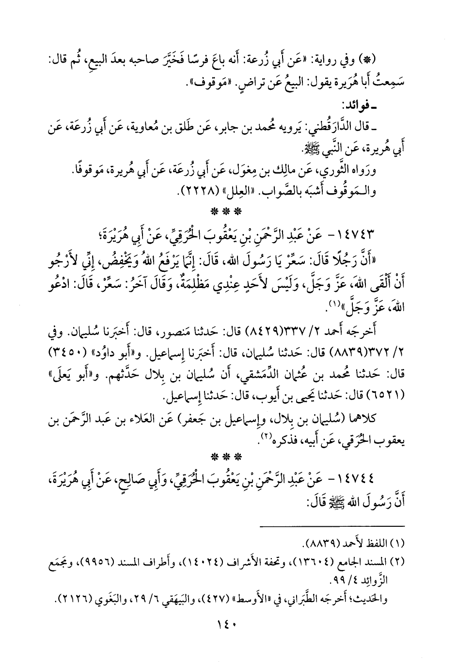 (¬٢) المسند الجامع (١٣٦٠٤)، وتحفة الأشراف (١٤٠٢٤)، وأطراف المسند (٩٩٥٦)، ومَجمَع الزوائد ٤/ ٩٩.