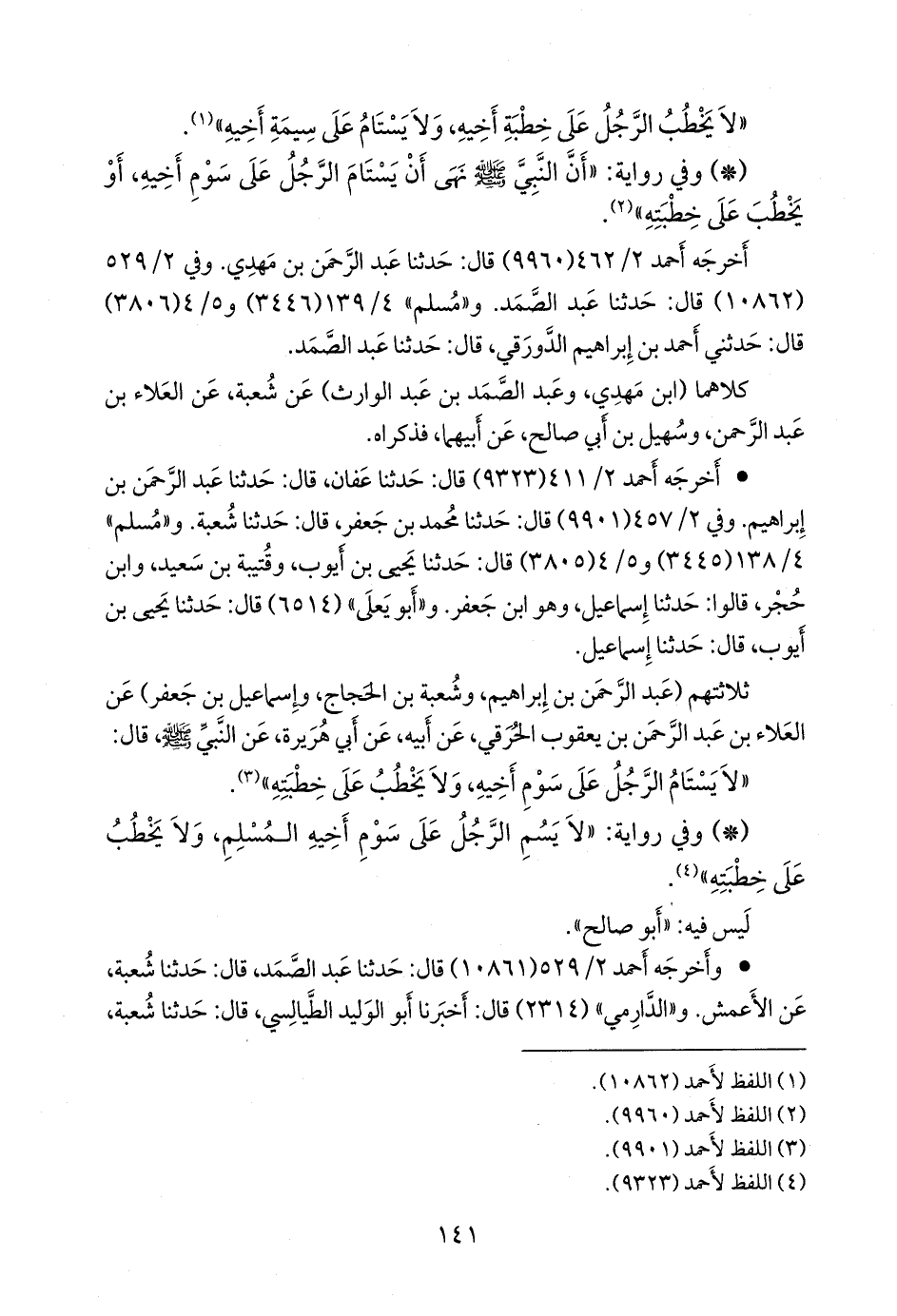 - وفي رواية: «لا يسم الرجل على سوم أخيه المسلم، ولا يخطب على خطبته» (¬٢).