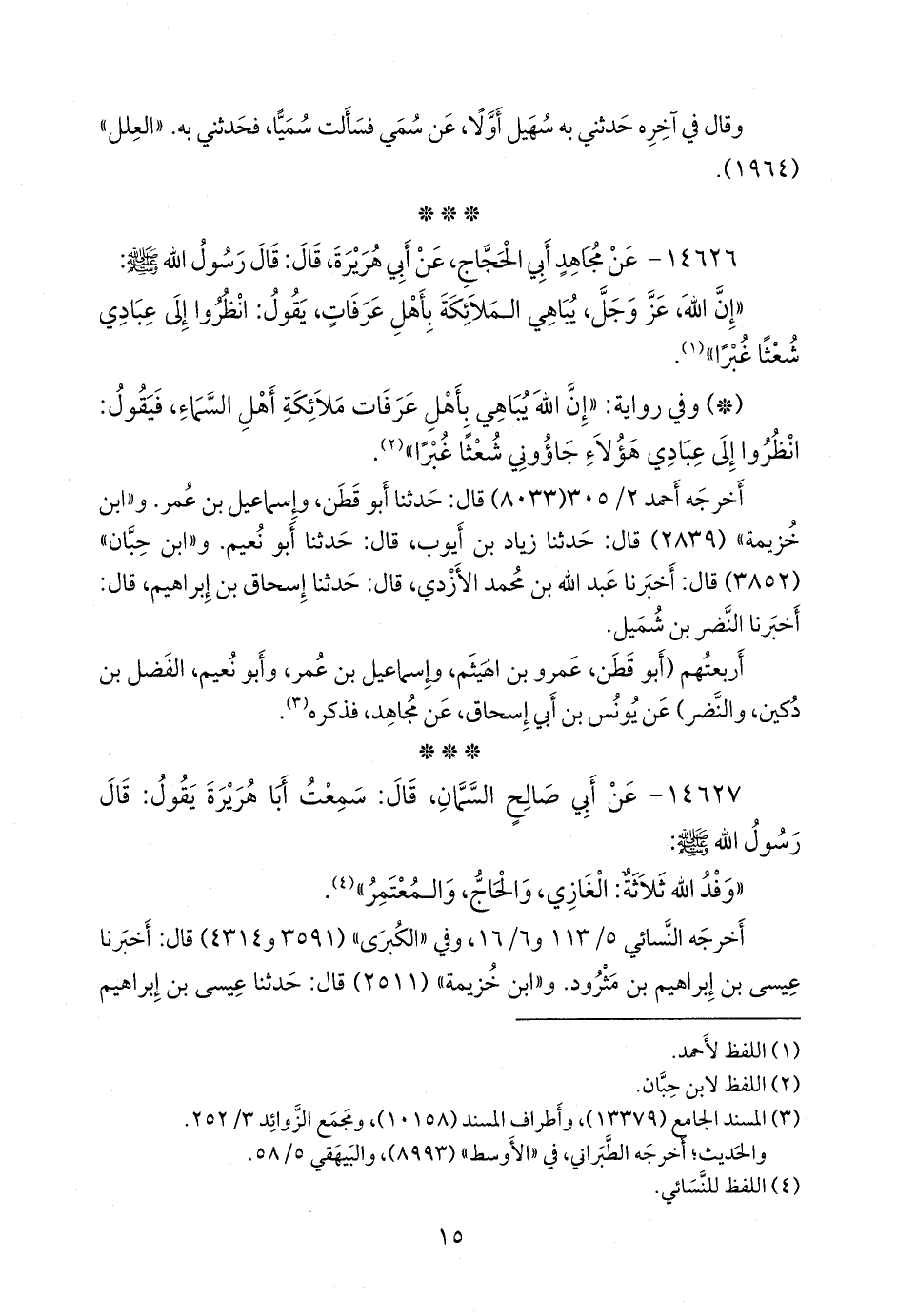 ١٤٦٢٦ - عن مجاهد أبي الحجاج، عن أبي هريرة، قال: قال رسول الله صَلى الله عَليه وسَلم: