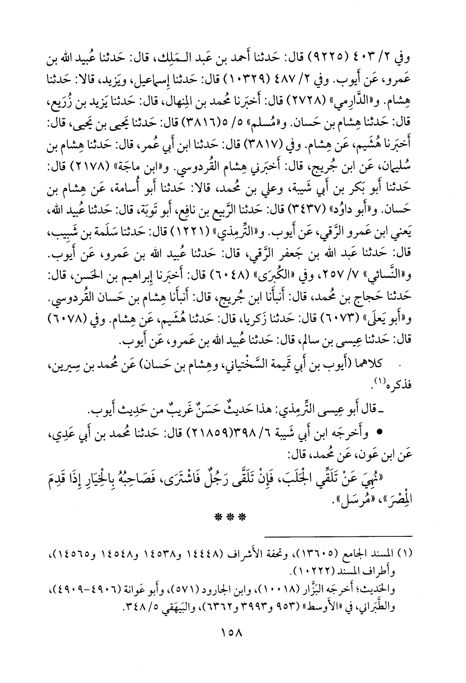 وفي (٣٨١٧) قال: حدثنا ابن أبي عمر، قال: حدثنا هشام بن سليمان، عن ابن جُريج، قال: أخبرني هشام القردوسي. و «ابن ماجة» (٢١٧٨) قال: حدثنا أَبو بكر بن أبي شيبة، وعلي بن محمد، قالا: حدثنا أَبو أسامة، عن هشام بن حسان. و «أَبو داود» (٣٤٣٧) قال: حدثنا الربيع بن نافع، أَبو توبة، قال: حدثنا عُبيد الله، يعني ابن عَمرو الرَّقِّي، عن أيوب. و «التِّرمِذي» (١٢٢١) قال: حدثنا سلمة بن شبيب، قال: حدثنا عبد الله بن جعفر الرَّقِّي، قال: حدثنا عُبيد الله بن عَمرو، عن أيوب. و «النَّسَائي» ٧/ ٢٥٧، وفي «الكبرى» (٦٠٤٨) قال: أخبرنا إبراهيم بن الحسن، قال: حدثنا حجاج بن محمد، قال: أنبأنا ابن جُريج، قال: أنبأنا هشام بن حسان القردوسي. و «أَبو يَعلى» (٦٠٧٣) قال: حدثنا زكريا، قال: حدثنا هُشيم، عن هشام. وفي (٦٠٧٨) قال: حدثنا عيسى بن سالم، قال: حدثنا عُبيد الله بن عَمرو، عن أيوب.