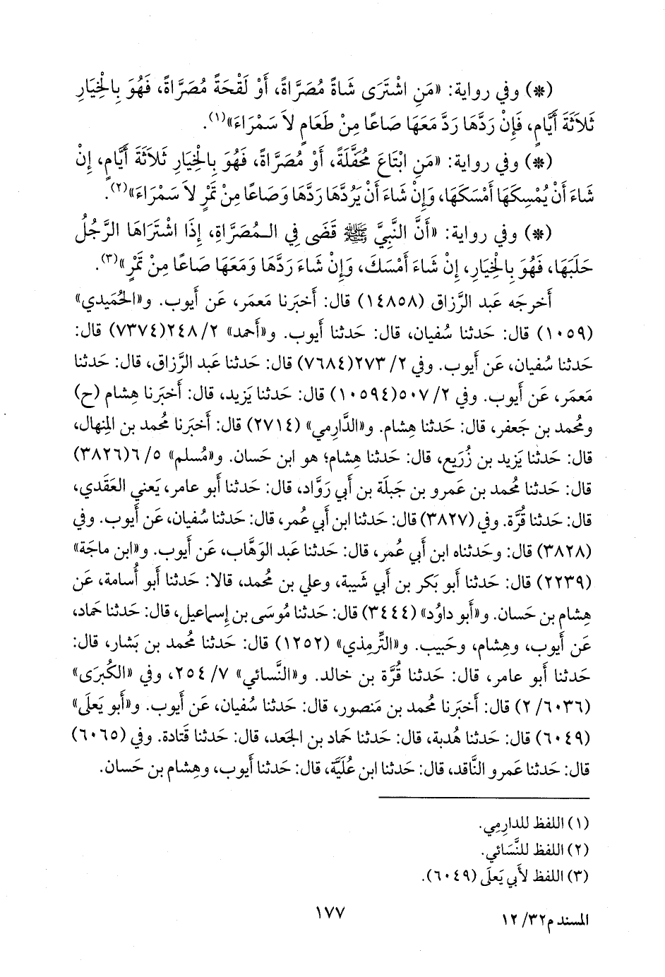 أخرجه عبد الرزاق (١٤٨٥٨) قال: أخبرنا مَعمَر، عن أيوب. و «الحميدي» (١٠٥٩) قال: حدثنا سفيان، قال: حدثنا أيوب. و «أحمد» ٢/ ٢٤٨ (٧٣٧٤) قال: حدثنا سفيان، عن أيوب. وفي ٢/ ٢٧٣ (٧٦٨٤) قال: حدثنا عبد الرزاق، قال: حدثنا مَعمَر، عن أيوب. وفي ٢/ ٥٠٧ (١٠٥٩٤) قال: حدثنا يزيد، قال: أخبرنا هشام (ح) ومحمد بن جعفر، قال: حدثنا هشام. و «الدَّارِمي» (٢٧١٤) قال: أخبرنا محمد بن المنهال، قال: حدثنا يزيد بن زُريع، قال: حدثنا هشام؛ هو ابن حسان. و «مسلم» ٥/ ٦ (٣٨٢٦) قال: حدثنا محمد بن عَمرو بن جبلة بن أبي رَوَّاد، قال: حدثنا أَبو عامر، يعني العَقَدي، قال: حدثنا قرة. وفي (٣٨٢٧) قال: حدثنا ابن أبي عمر، قال: حدثنا سفيان، عن أيوب. وفي (٣٨٢٨) قال: وحدثناه ابن أبي عمر، قال: حدثنا عبد الوَهَّاب، عن أيوب. و «ابن ماجة» (٢٢٣٩) قال: حدثنا أَبو بكر بن أبي شيبة، وعلي بن محمد، قالا: حدثنا أَبو أسامة، عن هشام بن حسان. و «أَبو داود» (٣٤٤٤) قال: حدثنا موسى بن إسماعيل، قال: حدثنا حماد، عن أيوب، وهشام، وحبيب. و «التِّرمِذي» (١٢٥٢) قال: حدثنا محمد بن بشار، قال: حدثنا أَبو عامر، قال: حدثنا قرة بن خالد. و «النَّسَائي» ٧/ ٢٥٤، وفي «الكبرى» (٦٠٣٦/ ٢) قال: أخبرنا محمد بن منصور، قال: حدثنا سفيان، عن أيوب. و «أَبو يَعلى» (٦٠٤٩) قال: حدثنا هُدبة، قال: حدثنا حماد بن الجعد، قال: حدثنا قتادة. وفي (٦٠٦٥) قال: حدثنا عَمرو الناقد، قال: حدثنا ابن عُلَية، قال: حدثنا أيوب، وهشام بن حسان.