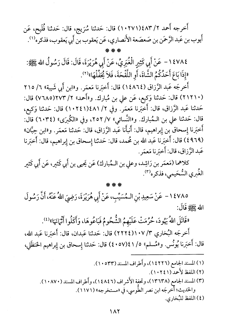 (¬٢) المسند الجامع (١٣٦٣٨)، وتحفة الأشراف (١٤٨٤٦)، وأطراف المسند (١٠٨٧٠).