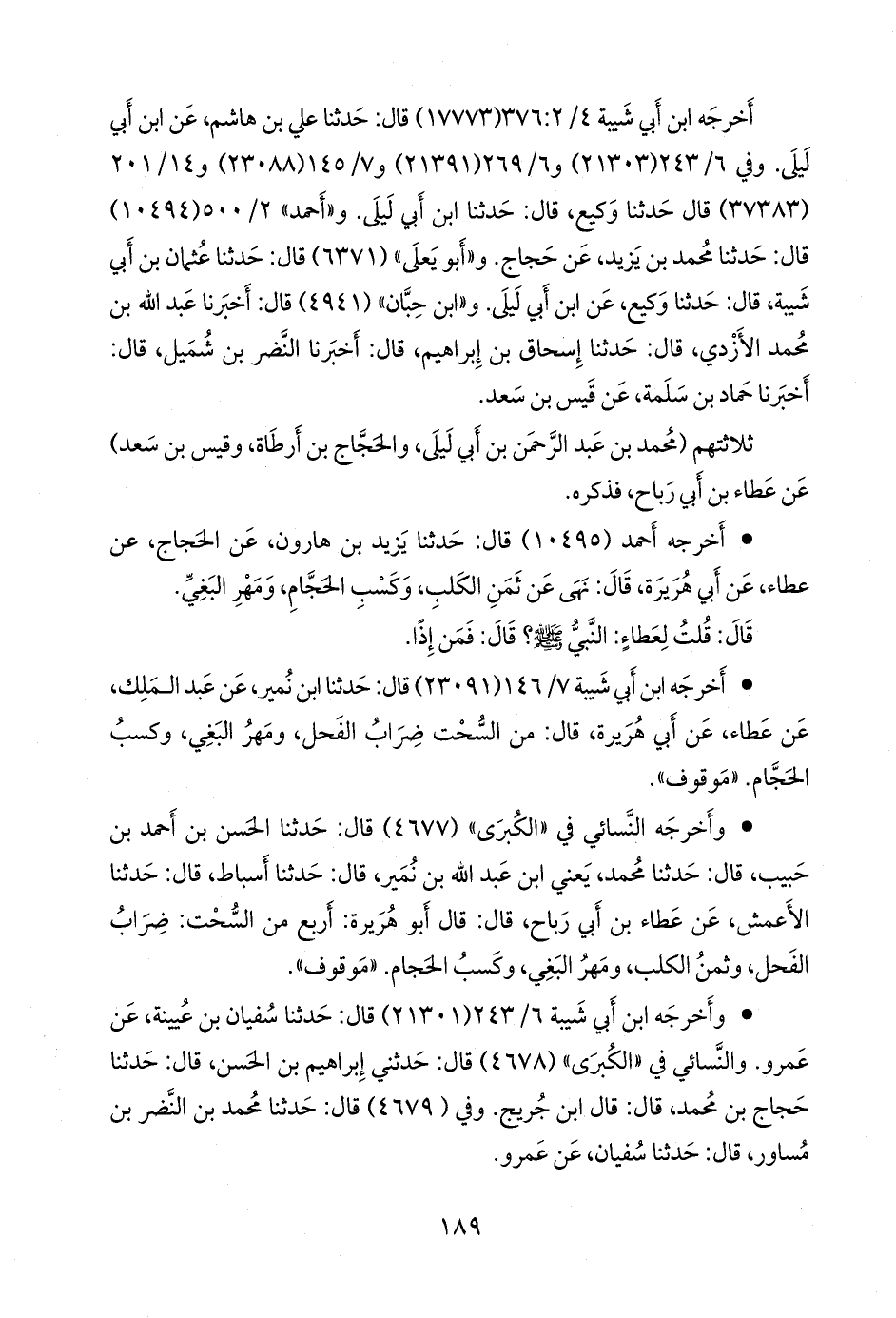 • وأخرجه النَّسَائي في «الكبرى» (٤٦٧٧) قال: حدثنا الحسن بن أحمد بن حبيب، قال: حدثنا محمد، يعني ابن عبد الله بن نُمير، قال: حدثنا أسباط، قال: حدثنا الأعمش، عن عطاء بن أبي رباح، قال: قال أَبو هريرة: أربع من السحت: ضراب الفحل، وثمن الكلب، ومهر البغي، وكسب الحجام. «موقوف».