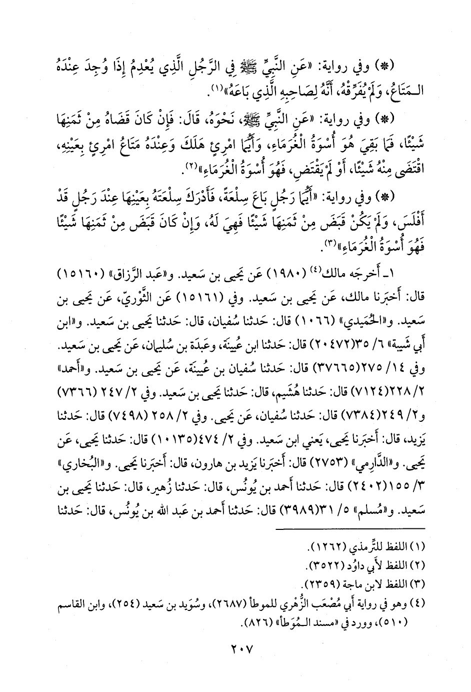 أخرجه مالك (¬١) (١٩٨٠) عن يحيى بن سعيد. و «عبد الرزاق» (١٥١٦٠) قال: أخبرنا مالك، عن يحيى بن سعيد. وفي (١٥١٦١) عن الثوري، عن يحيى بن سعيد. و «الحميدي» (١٠٦٦) قال: حدثنا سفيان، قال: حدثنا يحيى بن سعيد. و «ابن أبي شيبة» (٢٠٤٧٢) قال: حدثنا ابن عُيينة، وعَبدة بن سليمان، عن يحيى بن سعيد. وفي ١٤/ ٢٧٥ (٣٧٦٦٥) قال: حدثنا سفيان بن عُيينة، عن يحيى بن سعيد. و «أحمد» ٢/ ٢٢٨ (٧١٢٤) قال: حدثنا هُشيم، قال: حدثنا يحيى بن سعيد. وفي ٢/ ٢٤٧ (٧٣٦٦) و ٢/ ٢٤٩ (٧٣٨٤) قال: حدثنا سفيان، عن يحيى. وفي ٢/ ٢٥٨ (٧٤٩٨) قال: حدثنا يزيد، قال: أخبرنا يحيى، يعني ابن سعيد. وفي ٢/ ٤٧٤ (١٠١٣٥) قال: حدثنا يحيى، عن يحيى. و «الدَّارِمي» (٢٧٥٣) قال: أخبرنا يزيد بن هارون، قال: أخبرنا يحيى. و «البخاري» ٣/ ١٥٥ (٢٤٠٢) قال: حدثنا أحمد بن يونس، قال: حدثنا زهير، قال: حدثنا يحيى بن سعيد. و «مسلم» ٥/ ٣١ (٣٩٨٩) قال: حدثنا أحمد بن عبد الله بن يونس، قال: حدثنا