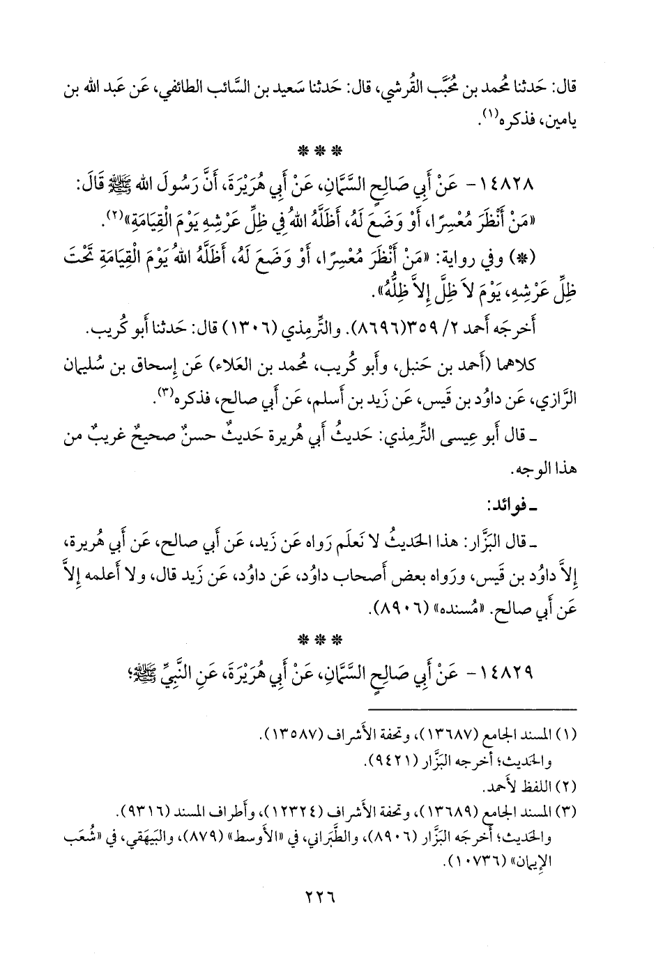 ١٤٨٢٨ - عن أبي صالح السَّمَّان، عن أبي هريرة، أن رسول الله صَلى الله عَليه وسَلم قال: