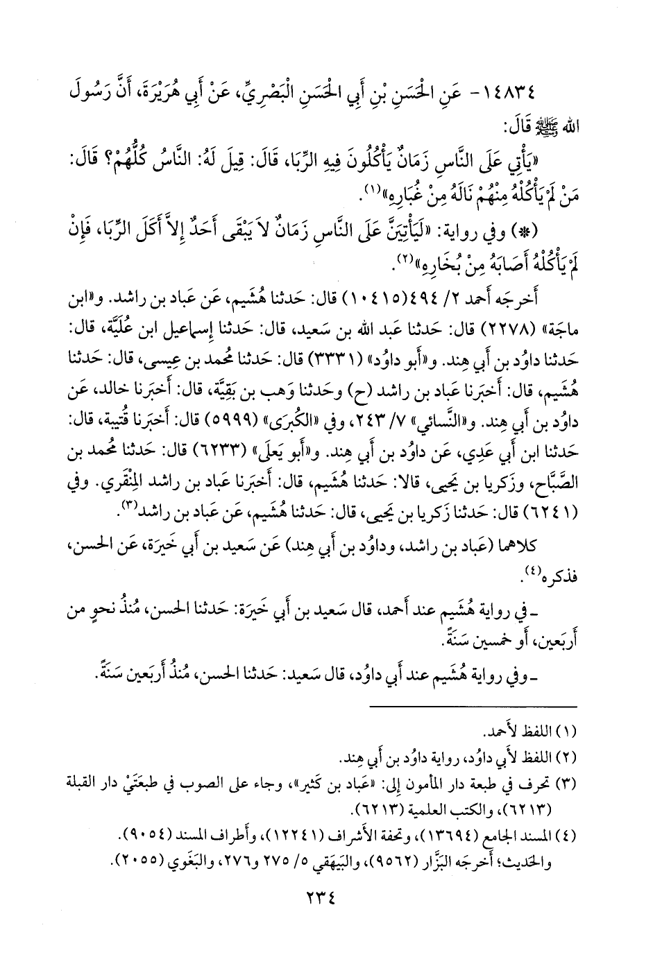 أخرجه أحمد (١٠٤١٥) قال: حدثنا هُشيم، عن عباد بن راشد. و «ابن ماجة» (٢٢٧٨) قال: حدثنا عبد الله بن سعيد، قال: حدثنا إسماعيل ابن عُلَية، قال: حدثنا داود بن أبي هند. و «أَبو داود» (٣٣٣١) قال: حدثنا محمد بن عيسى، قال: حدثنا هُشيم، قال: أخبرنا عباد بن راشد (ح) وحدثنا وهب بن بقية، قال: أخبرنا خالد، عن داود بن أبي هند. و «النَّسَائي» ٧/ ٢٤٣، وفي «الكبرى» (٥٩٩٩) قال: أخبرنا قتيبة، قال: حدثنا ابن أَبي عَدي، عن داود بن أبي هند. و «أَبو يَعلى» (٦٢٣٣) قال: حدثنا محمد بن الصباح، وزكريا بن يحيى، قالا: حدثنا هُشيم، قال: أخبرنا عباد بن راشد المنقري. وفي (٦٢٤١) قال: حدثنا زكريا بن يحيى، قال: حدثنا هُشيم، عن عباد بن راشد (¬٤).