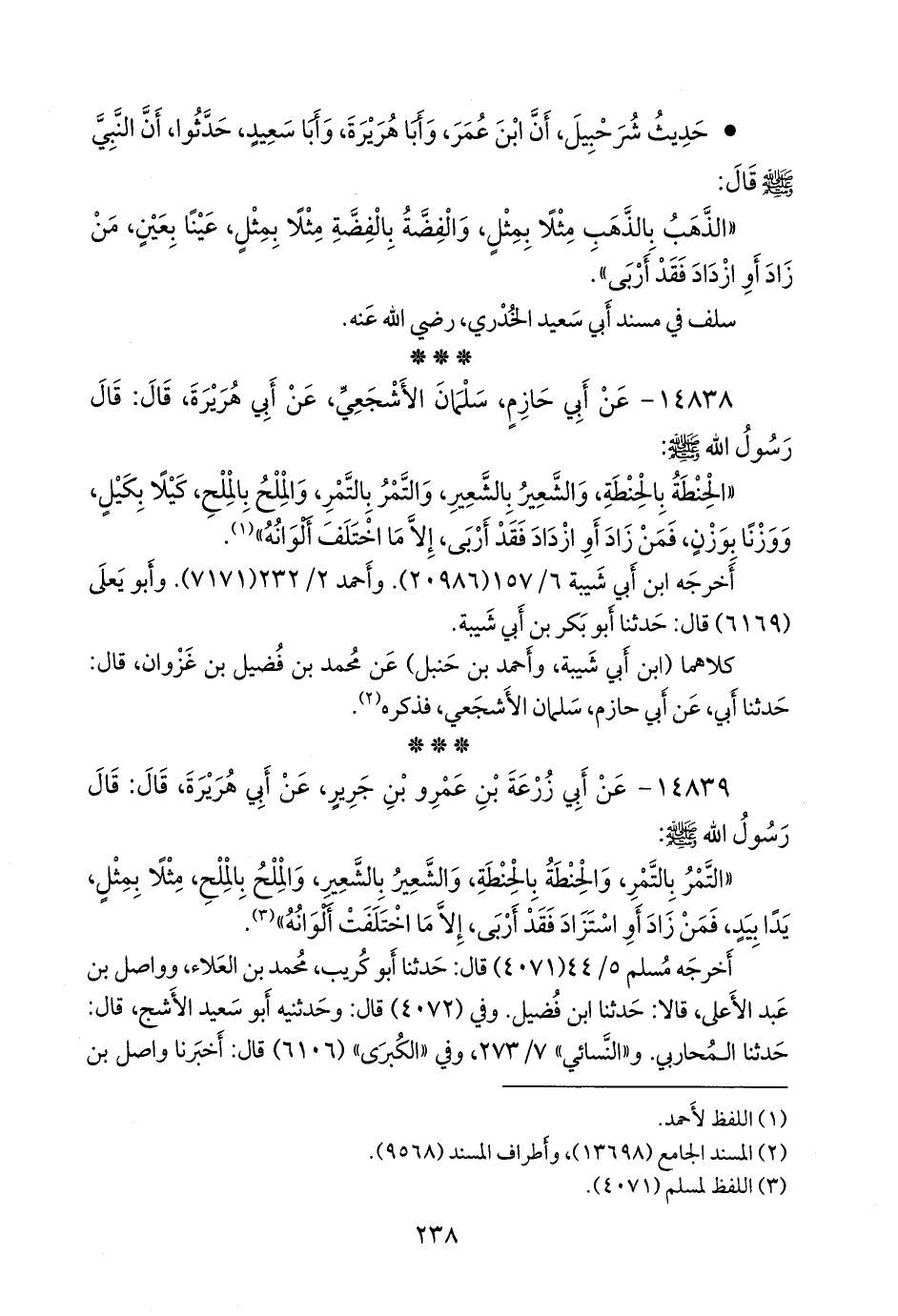 • حديث شرحبيل، أن ابن عمر، وأبا هريرة، وأبا سعيد، حدثوا، أن النبي صَلى الله عَليه وسَلم قال: