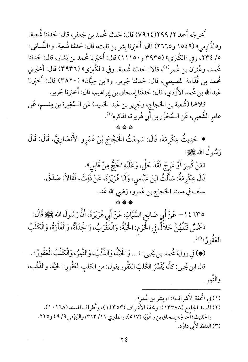 - وفي رواية محمد بن يحيى: «والحية، والذئب، والنمر، والكلب العقور».