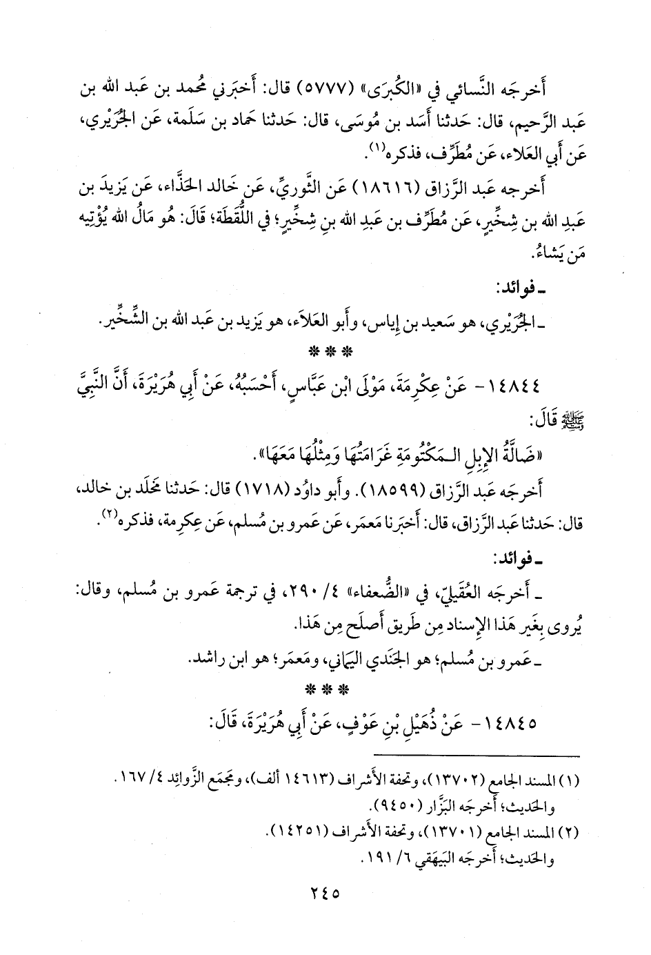 (¬٢) المسند الجامع (١٣٧٠٣)، وتحفة الأشراف (١٢٨٩٢)، وأطراف المسند (٩٣٢٧)، ومَجمَع الزوائد ٤/ ١٦٢.