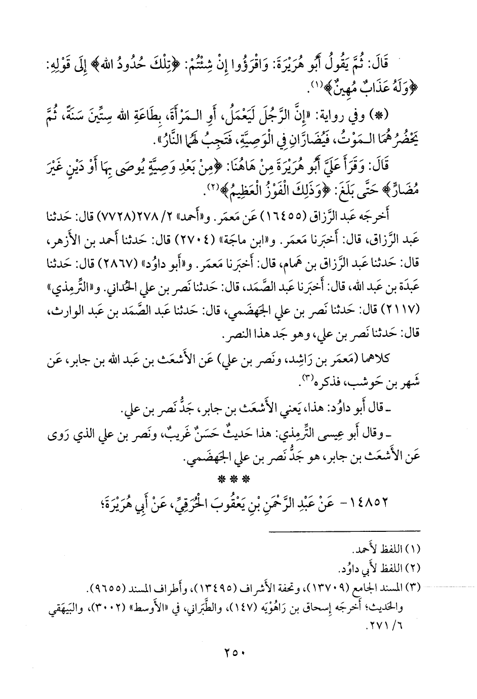 (¬٢) المسند الجامع (١٣٧١٠)، وتحفة الأشراف (١٣٩٨٤ و ١٤٠٤٣)، وأطراف المسند (٩٩٤٥).