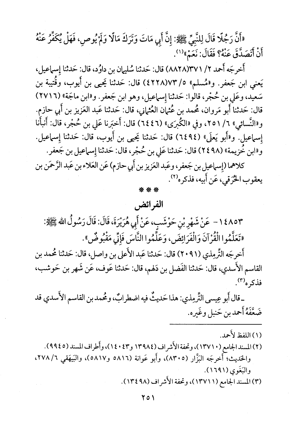 «تعلموا القرآن والفرائض، وعلموا الناس فإني مقبوض».