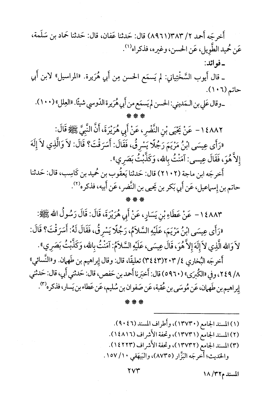 (¬١) المسند الجامع (١٣٧٣٢)، وتحفة الأشراف (١٤٢٢٣).