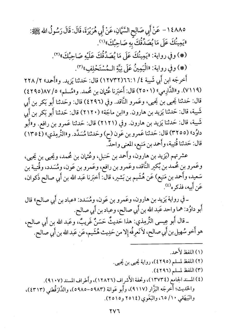 عشرتهم (يزيد بن هارون، وأحمد بن حنبل، وعثمان بن محمد، ويحيى بن يحيى، وعَمرو بن محمد بن بكير الناقد، وعَمرو بن رافع، وعَمرو بن عون، ومُسَدَّد، وقتيبة بن سعيد، وأحمد بن مَنيع) عن هُشيم بن بشير، قال: أخبرنا عبد الله بن أبي صالح ذكوان، عن أبيه، فذكره (¬٤).