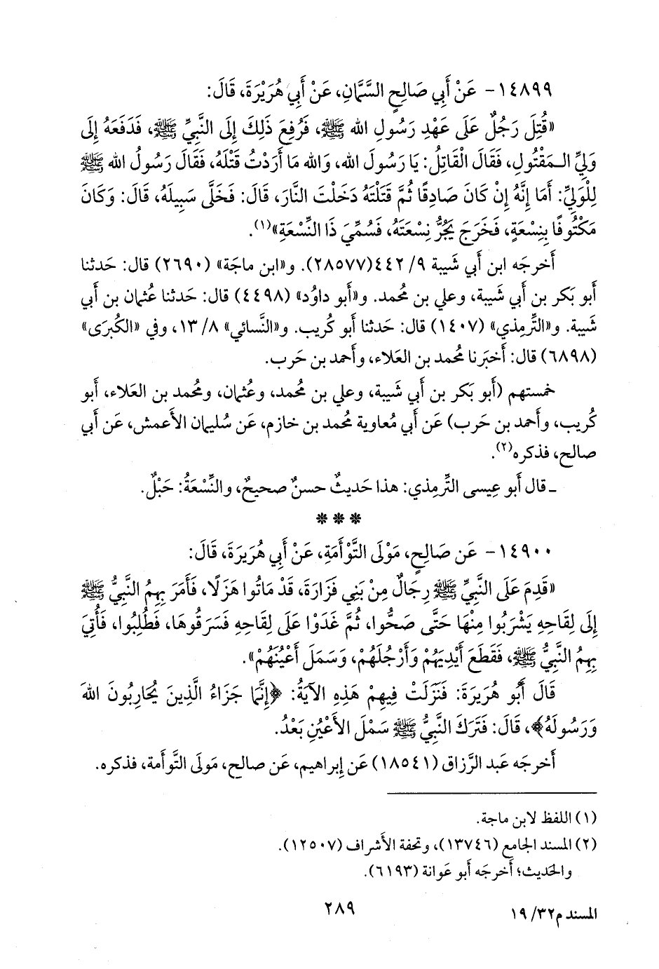 (¬٢) المسند الجامع (١٣٧٤٦)، وتحفة الأشراف (١٢٥٠٧).