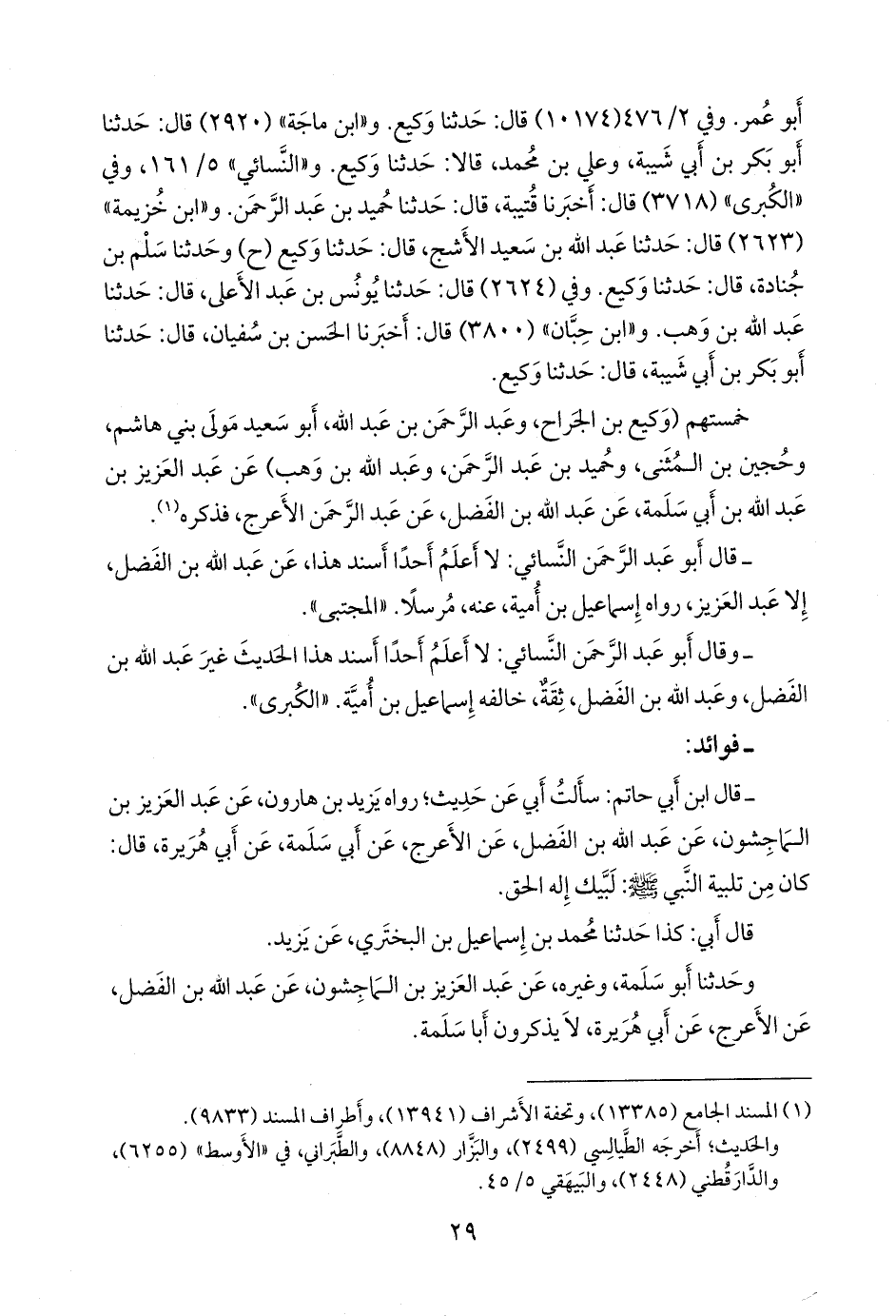 - قال عبد الرَّحمَن بن أبي حاتم الرازي: سألتُ أبي عن حديثٍ؛ رواه يزيد بن هارون، عن عبد العزيز بن المَاجِشون، عن عبد الله بن الفضل، عن الأعرج، عن أبي سلمة، عن أبي هريرة، قال: كان من تلبية النبي صَلى الله عَليه وسَلم: لبيك إله الحق.