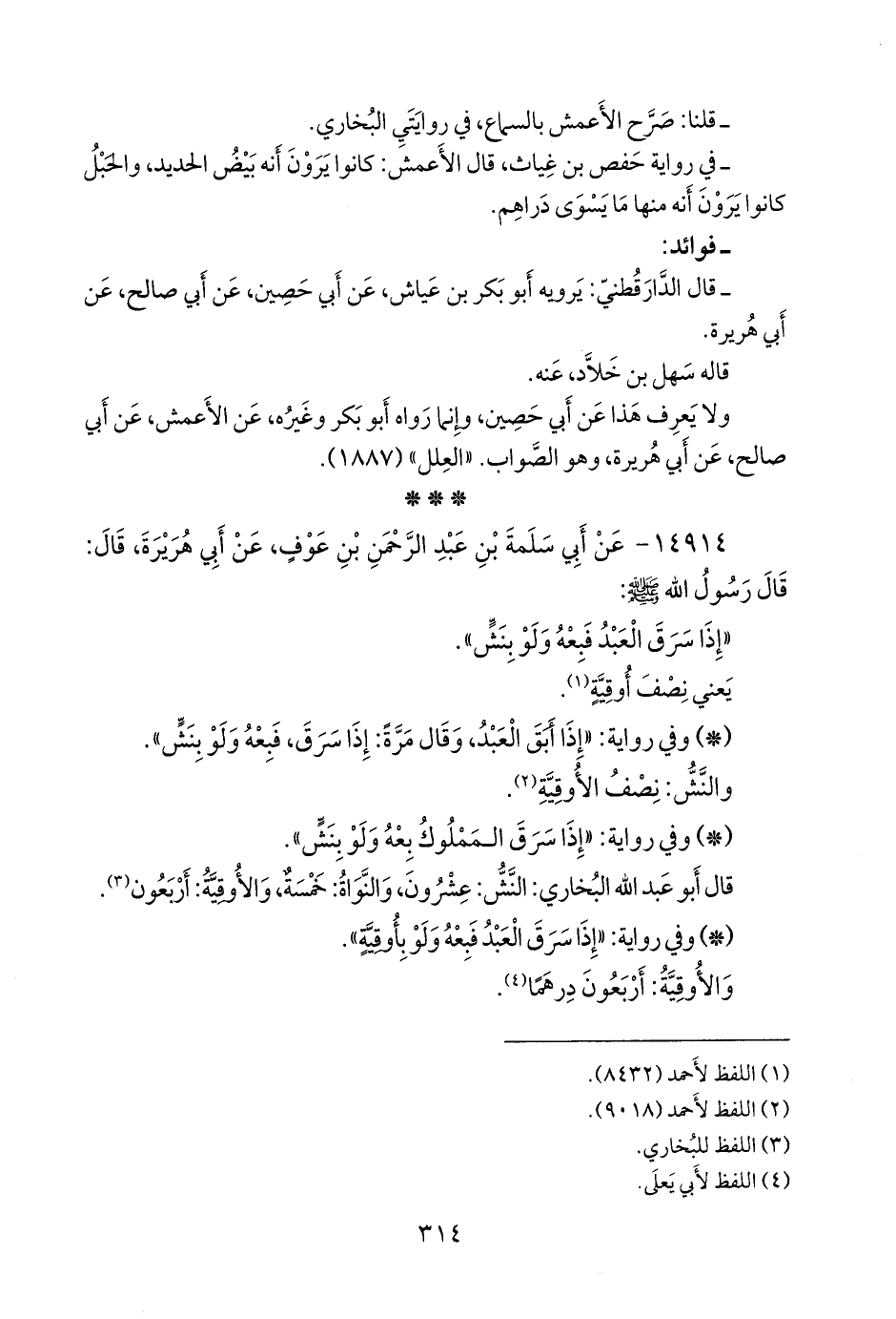 - قال الدارقُطني: يرويه أَبو بكر بن عياش، عن أبي حصين، عن أبي صالح، عن أبي هريرة.