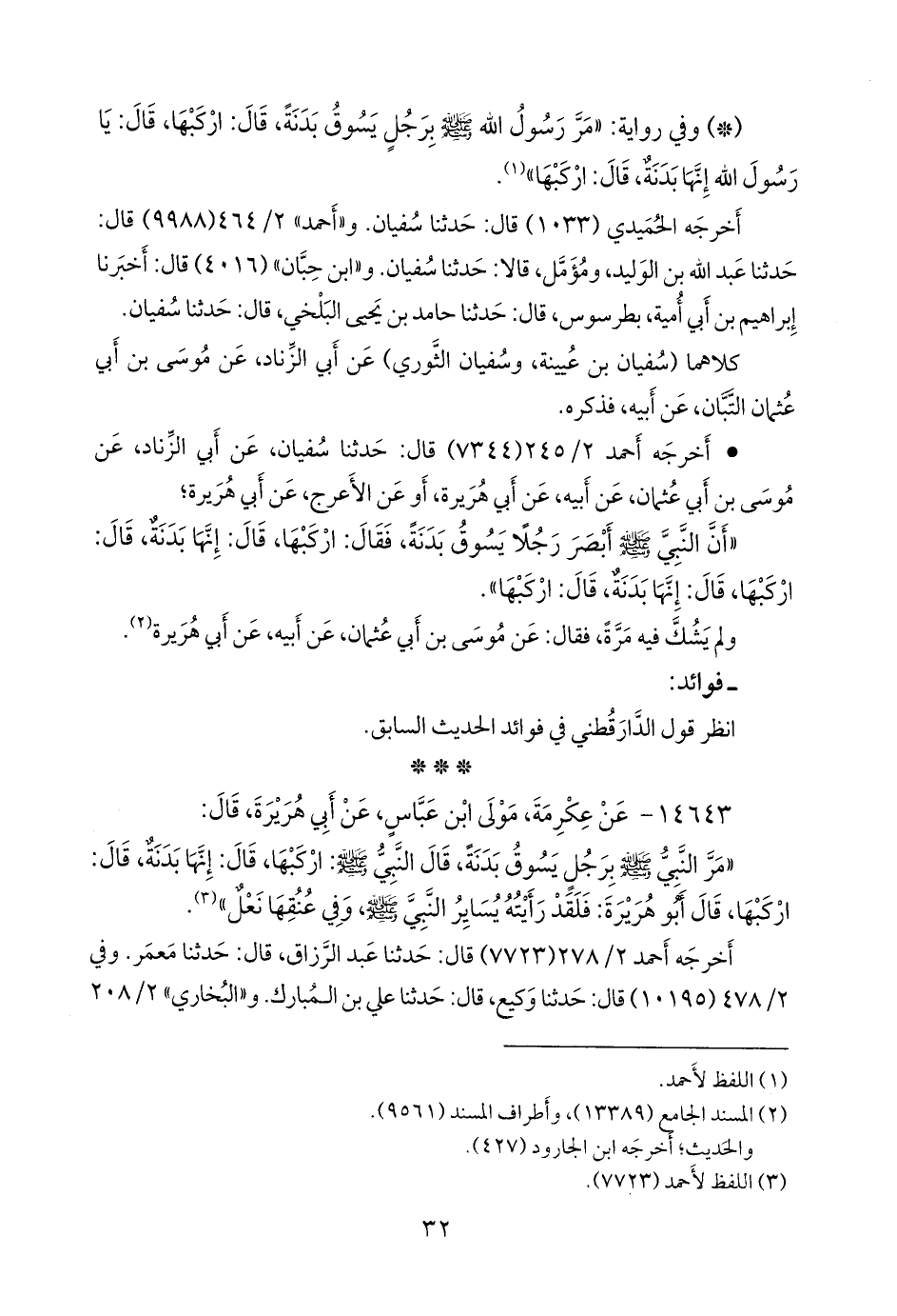 (¬٣) المسند الجامع (١٣٣٨٧)، وتحفة الأشراف (١٤٢٥٧)، وأطراف المسند (١٠٠٨١).