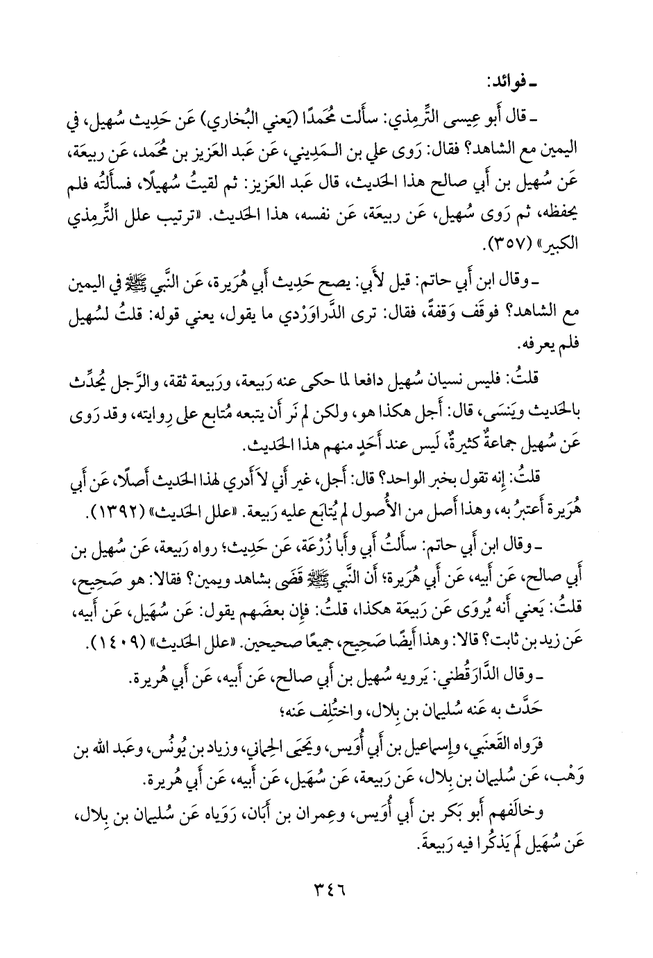 - قال التِّرمِذي: سألتُ محمدًا، يعني ابن إسماعيل البخاري، عن حديث سهيل، في اليمين مع الشاهد؟ فقال: روى علي بن المديني، عن عبد العزيز بن محمد، عن ربيعة، عن سهيل بن أبي صالح هذا الحديث، قال عبد العزيز: ثم لقيت سهيلا، فسألته فلم يحفظه، ثم روى سهيل، عن ربيعة، عن نفسه، هذا الحديث. «ترتيب علل التِّرمِذي الكبير» (٣٥٧).