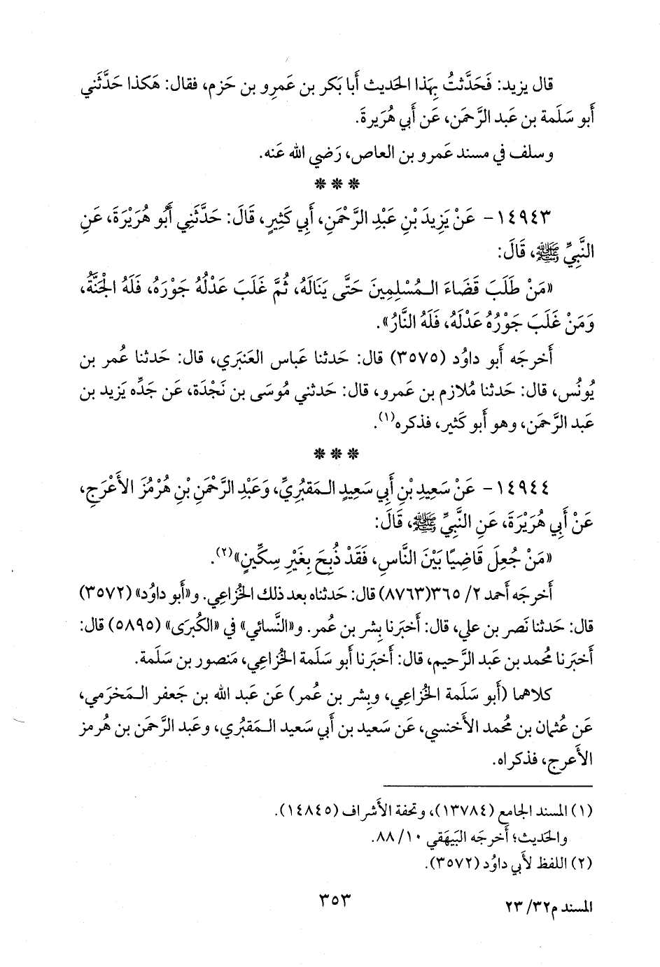 ١٤٩٤٤ - عن سعيد بن أبي سعيد المَقبُري، وعبد الرَّحمَن بن هُرمُز الأعرج، عن أبي هريرة، عن النبي صَلى الله عَليه وسَلم قال: