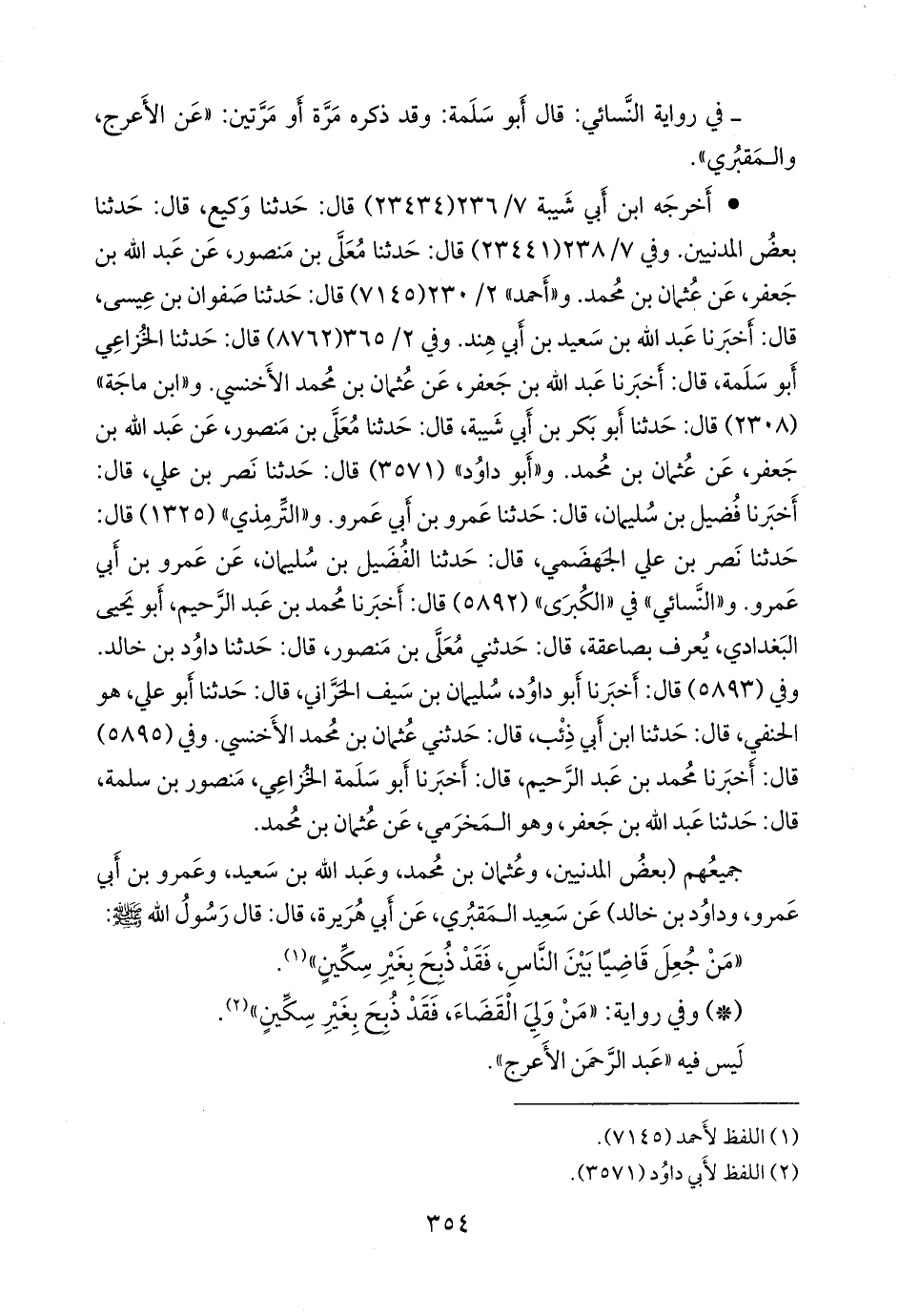 و «ابن ماجة» (٢٣٠٨) قال: حدثنا أَبو بكر بن أبي شيبة، قال: حدثنا مُعَلى بن منصور، عن عبد الله بن جعفر، عن عثمان بن محمد. و «أَبو داود» (٣٥٧١) قال: حدثنا نصر بن علي، قال: أخبرنا فضيل بن سليمان، قال: حدثنا عَمرو بن أبي عَمرو. و «التِّرمِذي» (١٣٢٥) قال: حدثنا نصر بن علي الجهضمي، قال: حدثنا الفضيل بن سليمان، عن عَمرو بن أبي عَمرو. و «النَّسَائي» في «الكبرى» (٥٨٩٢) قال: أخبرنا محمد بن عبد الرحيم، أَبو يحيى البغدادي، يعرف بصاعقة، قال: حدثني مُعَلى بن منصور، قال: حدثنا داود بن خالد. وفي (٥٨٩٣) قال: أخبرنا أَبو داود سليمان بن سيف الحراني، قال: حدثنا أَبو علي، هو الحنفي، قال: حدثنا ابن أبي ذِئب، قال: حدثني عثمان بن محمد الأخنسي. وفي (٥٨٩٥) قال: أخبرنا محمد بن عبد الرحيم، قال: أخبرنا أَبو سلمة الخُزاعي، منصور بن سلمة، قال: حدثنا عبد الله بن جعفر، وهو المخرمي، عن عثمان بن محمد.