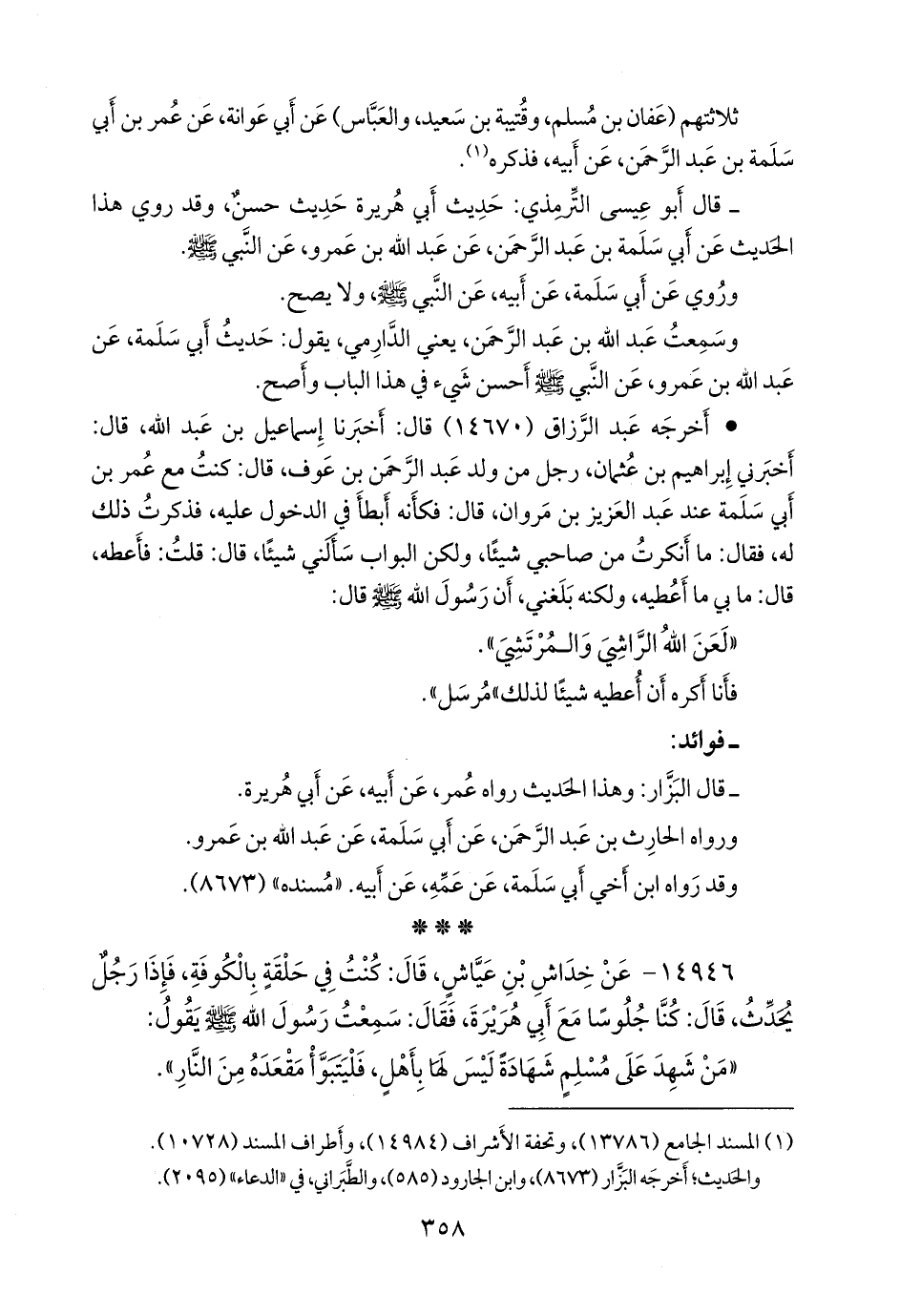 (¬١) المسند الجامع (١٣٧٨٧)، وأطراف المسند (١٠٩٢٥)، ومَجمَع الزوائد ٤/ ٢٠٠، وإتحاف الخِيرَة المَهَرة (٤٩٤١).