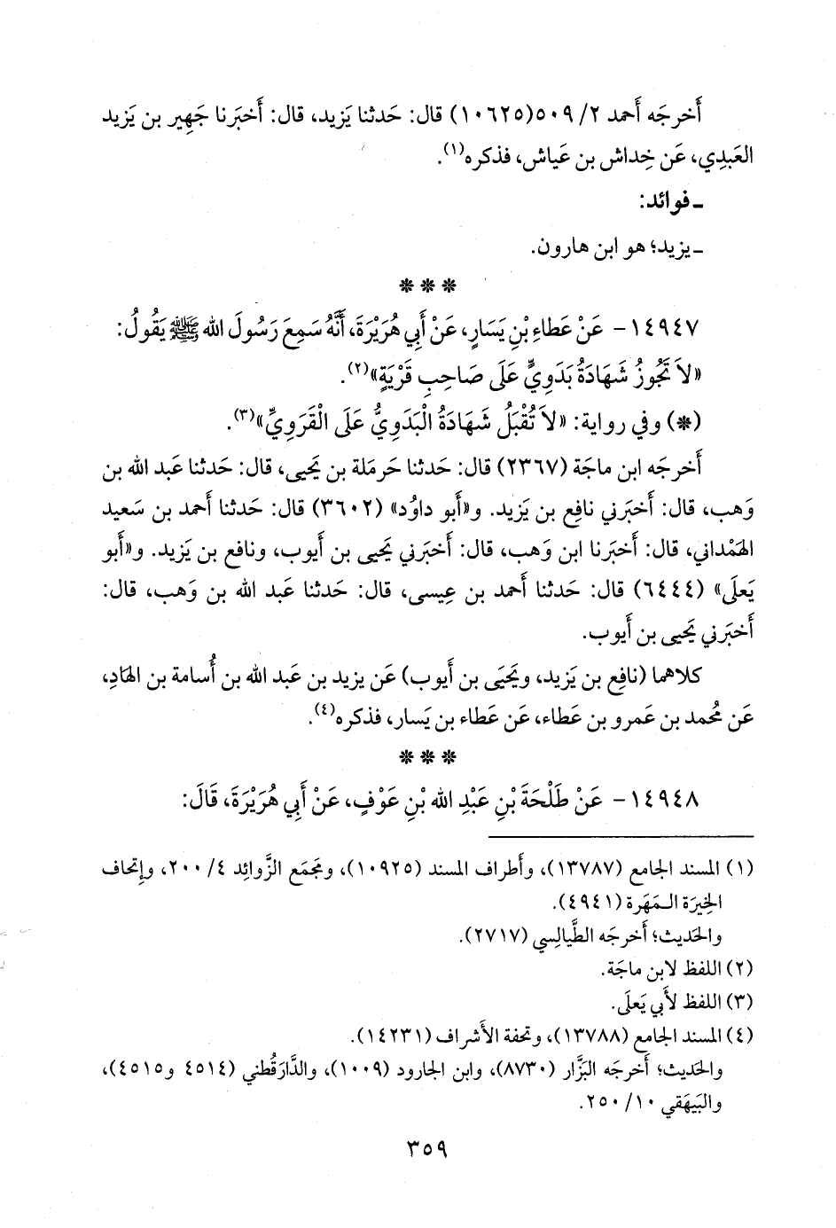 ١٤٩٤٨ - عن طلحة بن عبد الله بن عوف، عن أبي هريرة، قال: