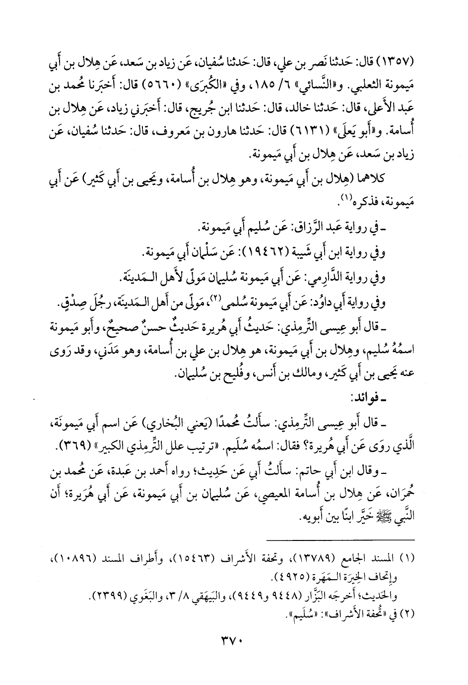 (¬١) المسند الجامع (١٣٧٨٩)، وتحفة الأشراف (١٥٤٦٣)، وأطراف المسند (١٠٨٩٦)، وإتحاف الخِيرَة المَهَرة (٤٩٢٥).