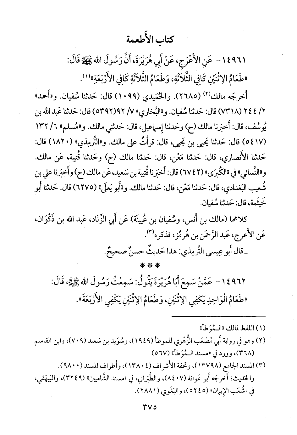 «طعام الاثنين كافي الثلاثة، وطعام الثلاثة كافي الأربعة» (¬١).