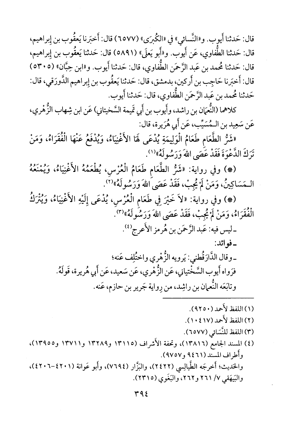 - وفي رواية: «لا خير في طعام العرس، يدعى إليه الأغنياء، ويترك الفقراء، ومن لم يجب، فقد عصى الله ورسوله» (¬٣).