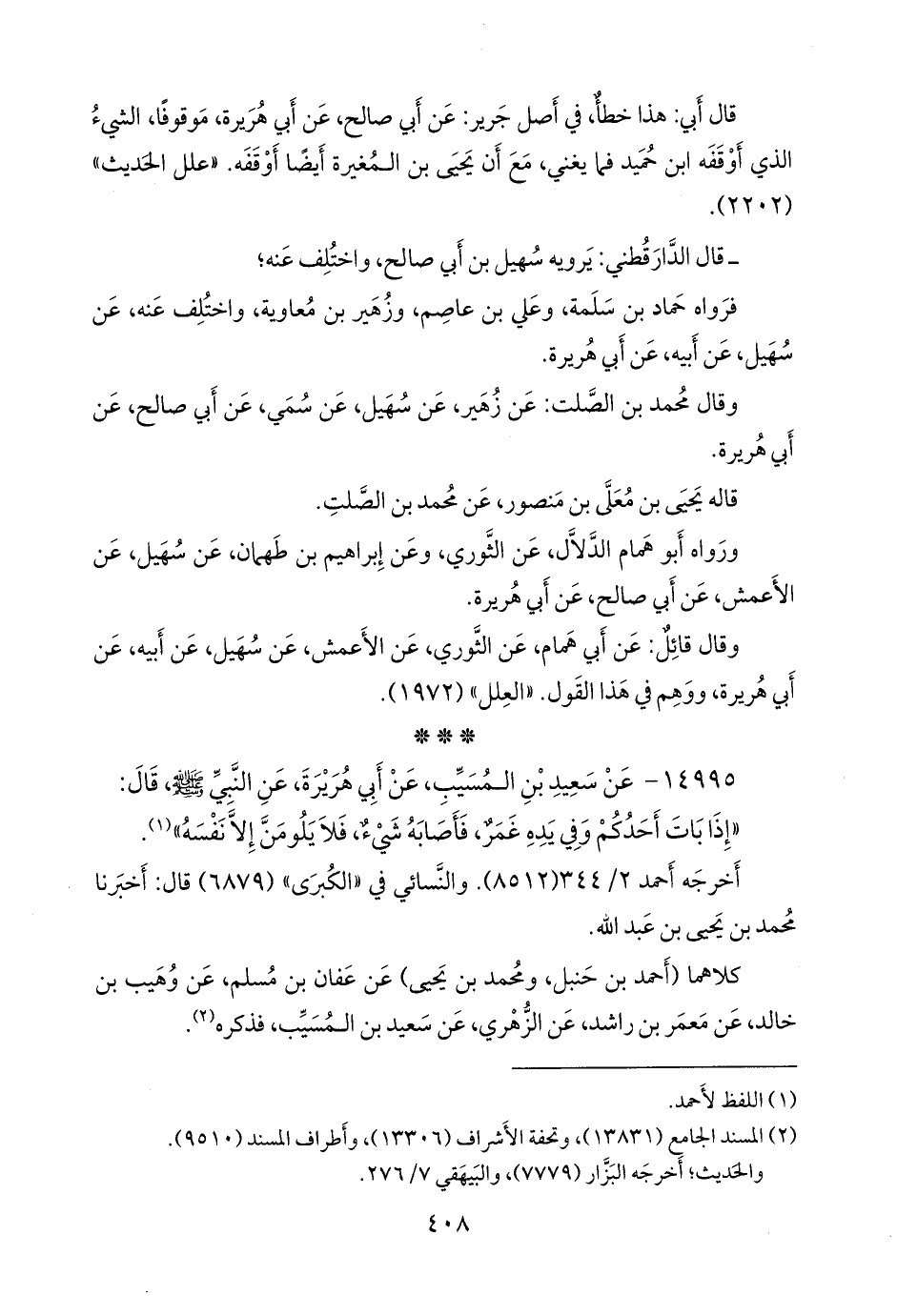 كلاهما (أحمد بن حنبل، ومحمد بن يحيى) عن عفان بن مسلم، عن وهيب بن خالد، عن مَعمَر بن راشد، عن الزُّهْري، عن سعيد بن المُسَيب، فذكره (¬٢).