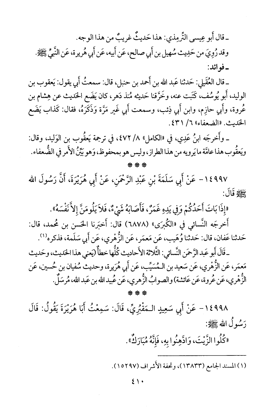 ١٤٩٩٧ - عن أبي سلمة بن عبد الرَّحمَن، عن أبي هريرة، أن رسول الله صَلى الله عَليه وسَلم قال: