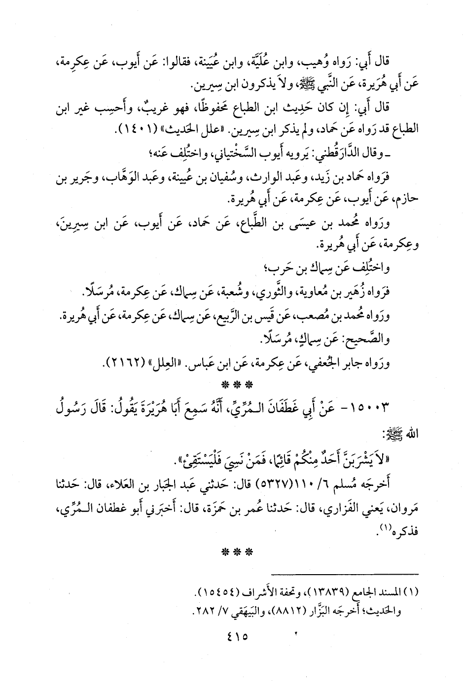 ١٥٠٠٣ - عن أبي غطفان المري، أنه سمع أبا هريرة يقول: قال رسول الله صَلى الله عَليه وسَلم: